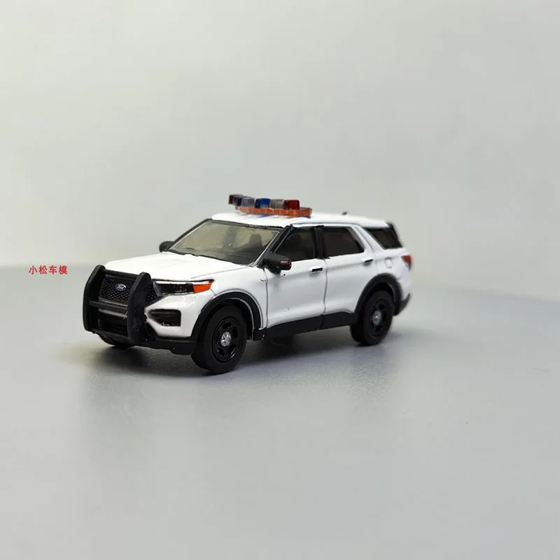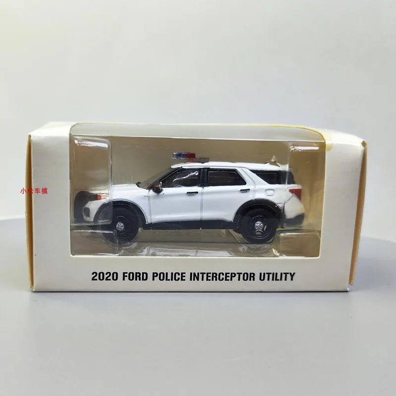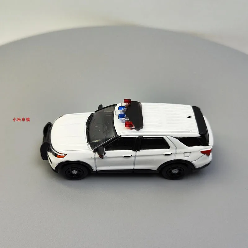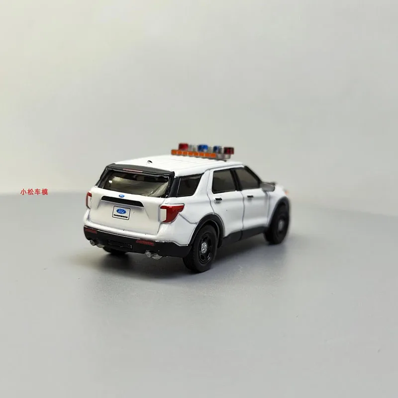 Imagine owning this highly detailed 1:64 scale diecast alloy model of the 2020 Ford Police Interceptor. With its sleek white finish, it beautifully captures the authentic contours and lines of the real vehicle, making it a perfect addition for display or collection. The glossy surface enhances its polished, professional appearance, while the black grille guard adds a bold touch of realism. On the roof, a vibrant police light bar with red, blue, and clear lenses brings colorful authenticity to this miniature. Measuring approximately 7.5 centimeters, it's a compact yet striking piece that will elevate your display—be it in your office, study, or shelf—showcasing your appreciation for detailed automotive replicas.