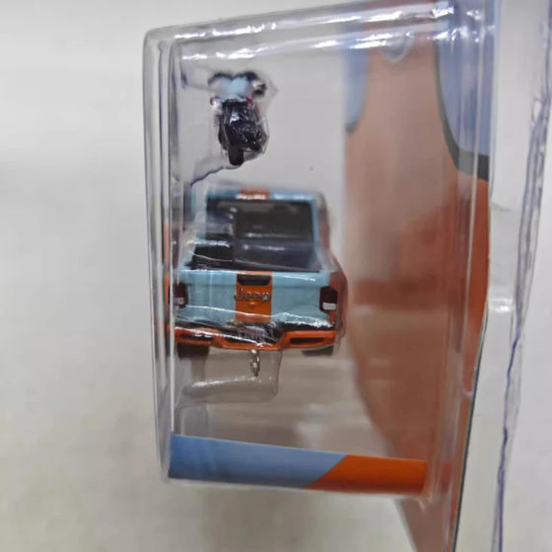 Imagine showcasing this stunning diecast model car in your collection — the 2020 Jeep Gladiator Rubicon in a vibrant light blue with striking orange accents. This meticulously crafted model features a detailed black hardtop and two motorcycles mounted on the roof, highlighting its adventurous spirit. The scale of 1:64 allows for a compact yet detailed display, making it the perfect gift for enthusiasts and collectors alike. With its solid alloy and plastic construction, this model doesn’t require any batteries or electrical features, allowing you to appreciate its beauty without hassle. Display it proudly and let it spark conversations among fellow collectors.