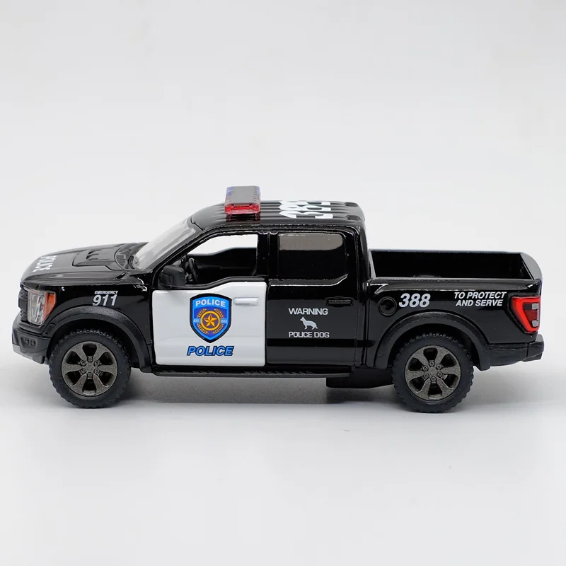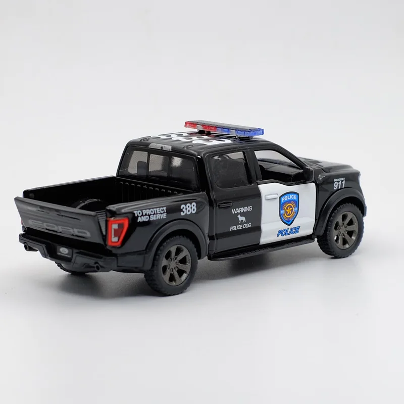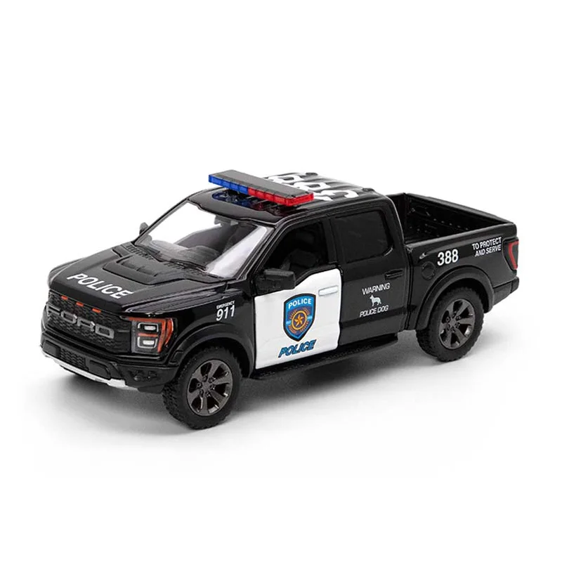 Adding this finely detailed diecast model to your collection will bring a sense of realism and authority. Its precise craftsmanship and vibrant police livery make it a standout piece. Whether you're a passionate collector or looking for a unique gift, this model offers both quality and charm. Its realistic features, like open doors and functional pull-back movement, enhance the experience. Don't miss out—bring home your this police car model today and enjoy a miniature masterpiece that embodies the rugged spirit of the F-150 Raptor police vehicle.