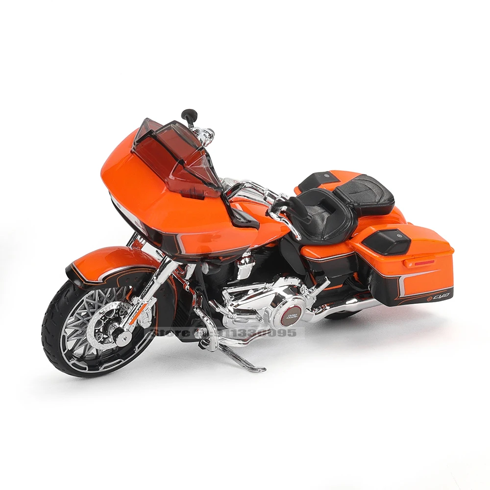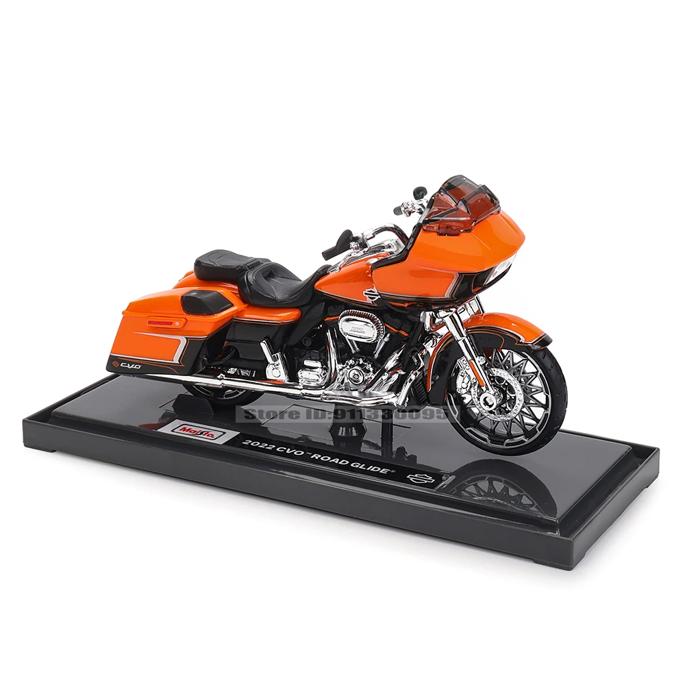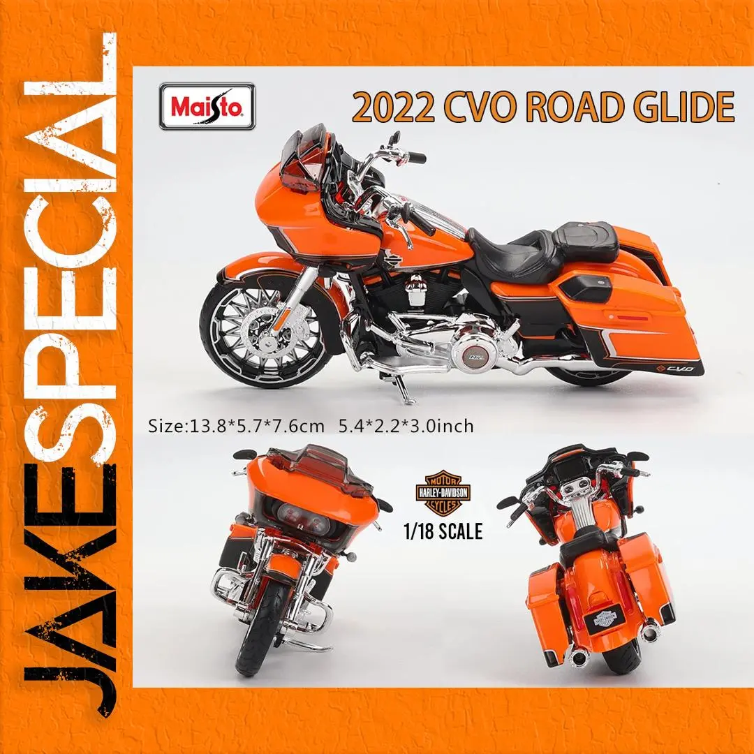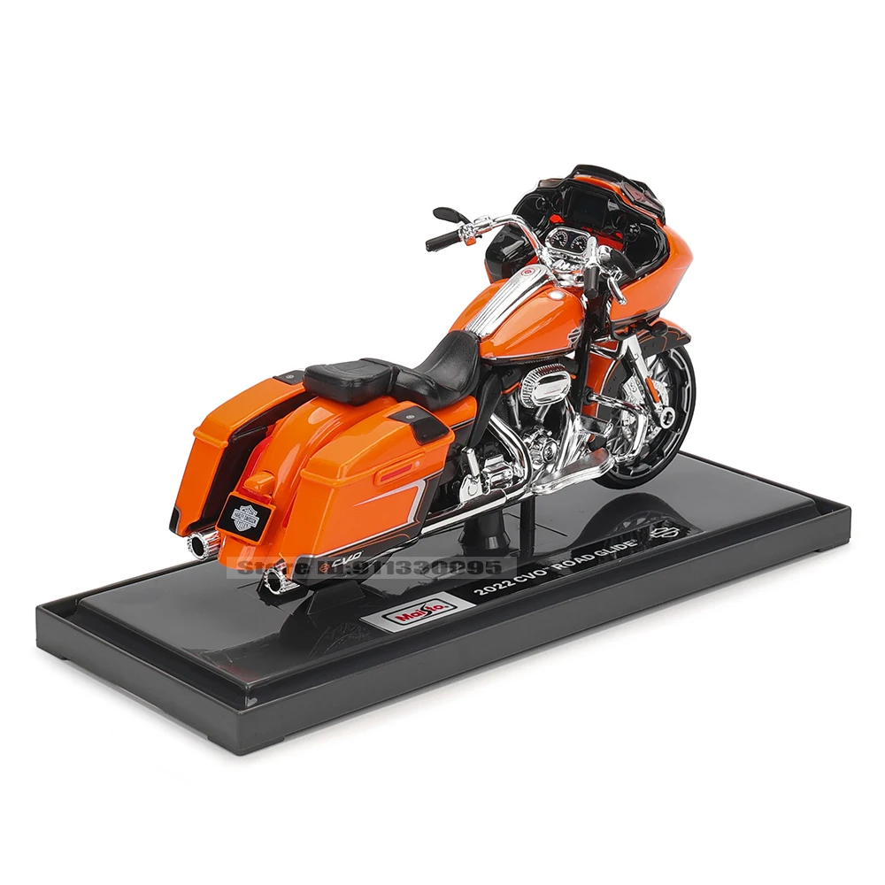Experience the excitement of motorcycle collection with this stunning diecast model of the 2022 Harley-Davidson CVO Road Glide Ultra Limited. With a vibrant, glossy orange finish and intricate chrome details, this 1:18 scale representation embodies both precision and artistry. You'll be captivated by the sporty black accents, tinted windshield, and detailed wheel designs that replicate the authentic motorcycle. Each feature showcases the exceptional craftsmanship, making it not just a model, but a true collectible piece. Picture it prominently displayed in your collection, sparking joy every time you glance at it.