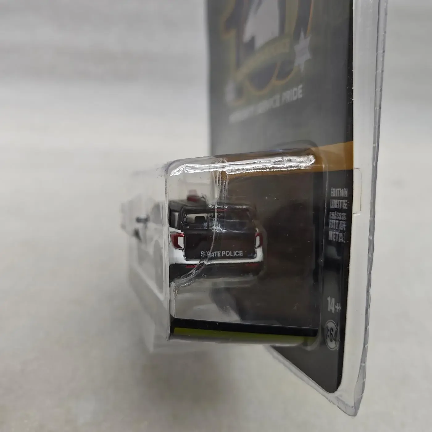 - Designed in 1:64 scale with a striking black and white two-tone finish that mimics real police SUVs.