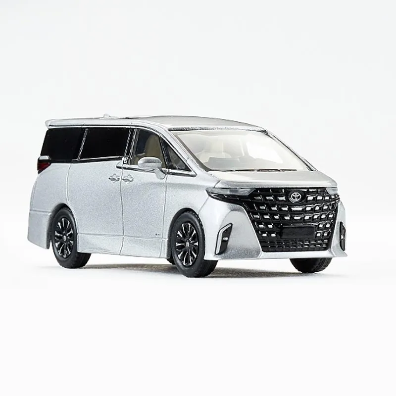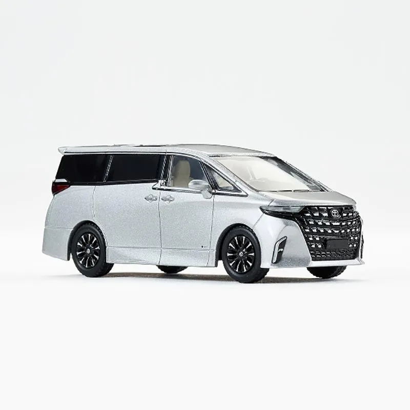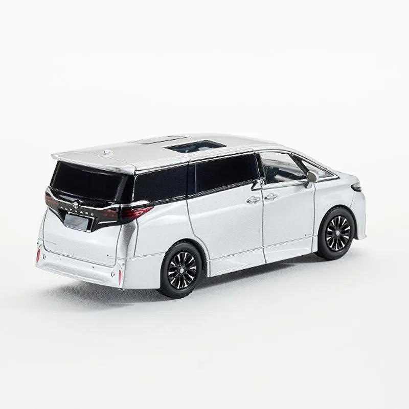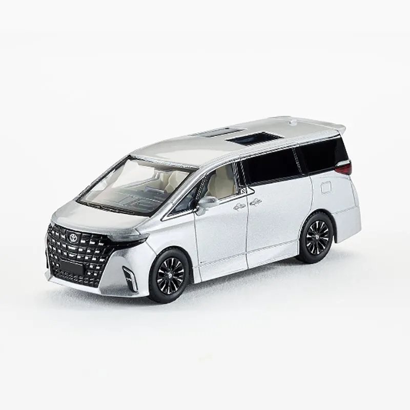 This meticulously crafted 1/64 scale diecast model of the 2023 Alphard by MASSDI features a sleek silver alloy body with a glossy finish, detailed grille with horizontal and vertical slats, and slim elongated headlights. The model displays two black-tinted rectangular sunroof panels along the center of the roof, complemented by black accent trim on the beltline and windows. Its black multi-spoke wheels and transparent windows with faint interior details enhance realism. Made from alloy and plastic, this collectible serves as a stylish static display for enthusiasts and collectors aged 14 and above. It’s an elegant tribute to modern vehicle design, perfect for showcasing or gifting.