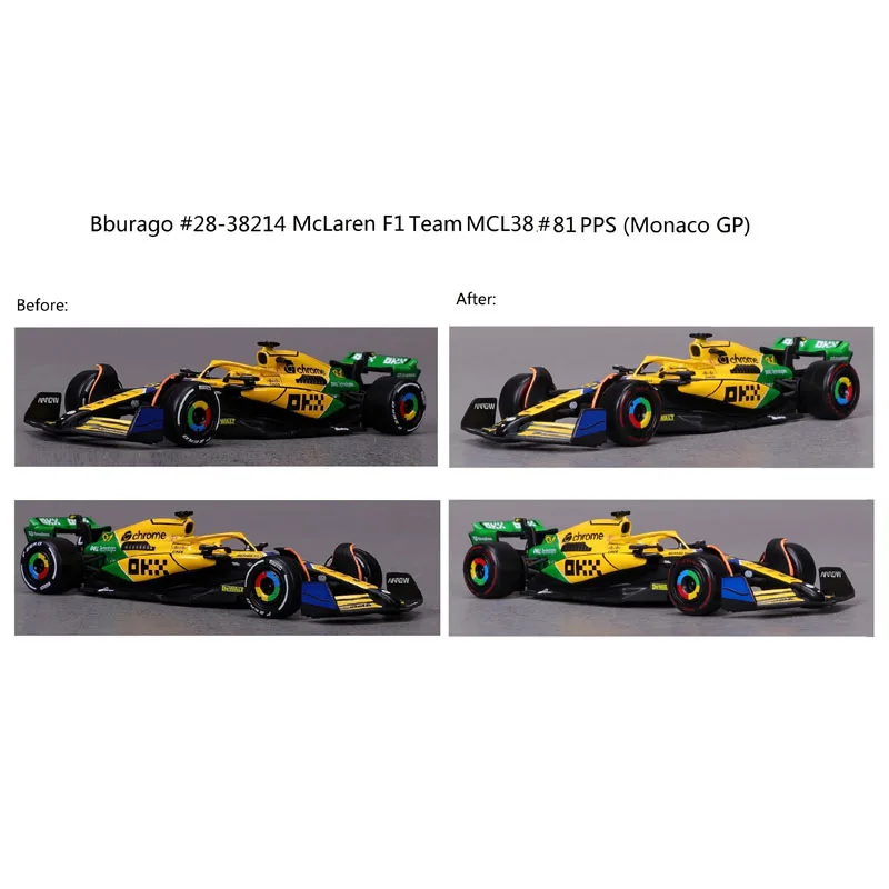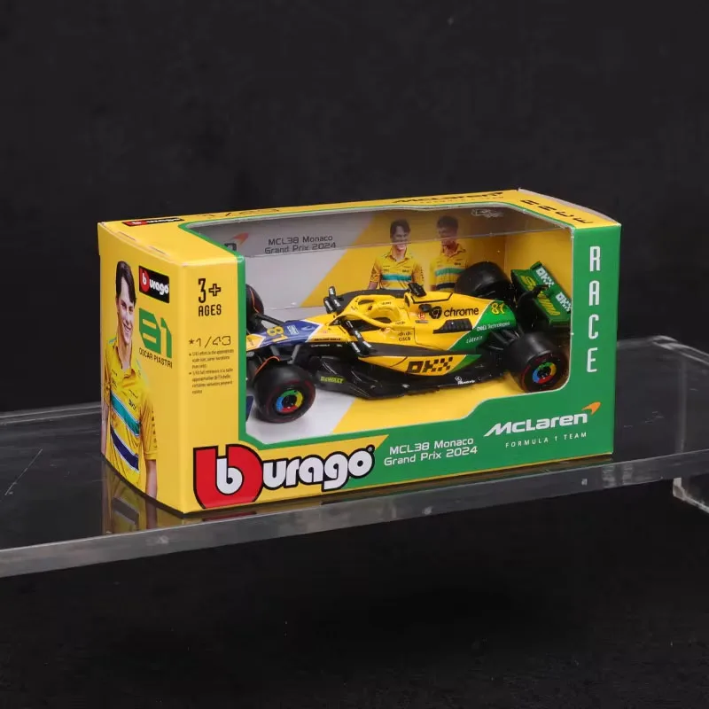 - This diecast model replicates the 2024 McLaren Mcl38 Monaco GP with exceptional detail and authenticity, perfect for display and collectible enthusiasts. The model showcases precision craftsmanship and high-quality materials.