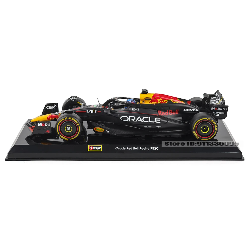 Experience the thrill of Formula 1 with this highly detailed 1:24 scale diecast model car, approximately 5″ long, featuring a sleek black design accented with vibrant red and yellow Red Bull branding. Crafted from zinc alloy with plastic parts and rubber tires, it boasts realistic aerodynamic details, functional doors and hood, and a metallic finish that captures the high-performance spirit of the 2024 Red Bull Racing F1 car driven by Max Verstappen. Equipped with a robust pull-back device capable of sliding 20 meters, this model offers both dynamic play and a striking display piece for collectors and enthusiasts alike.