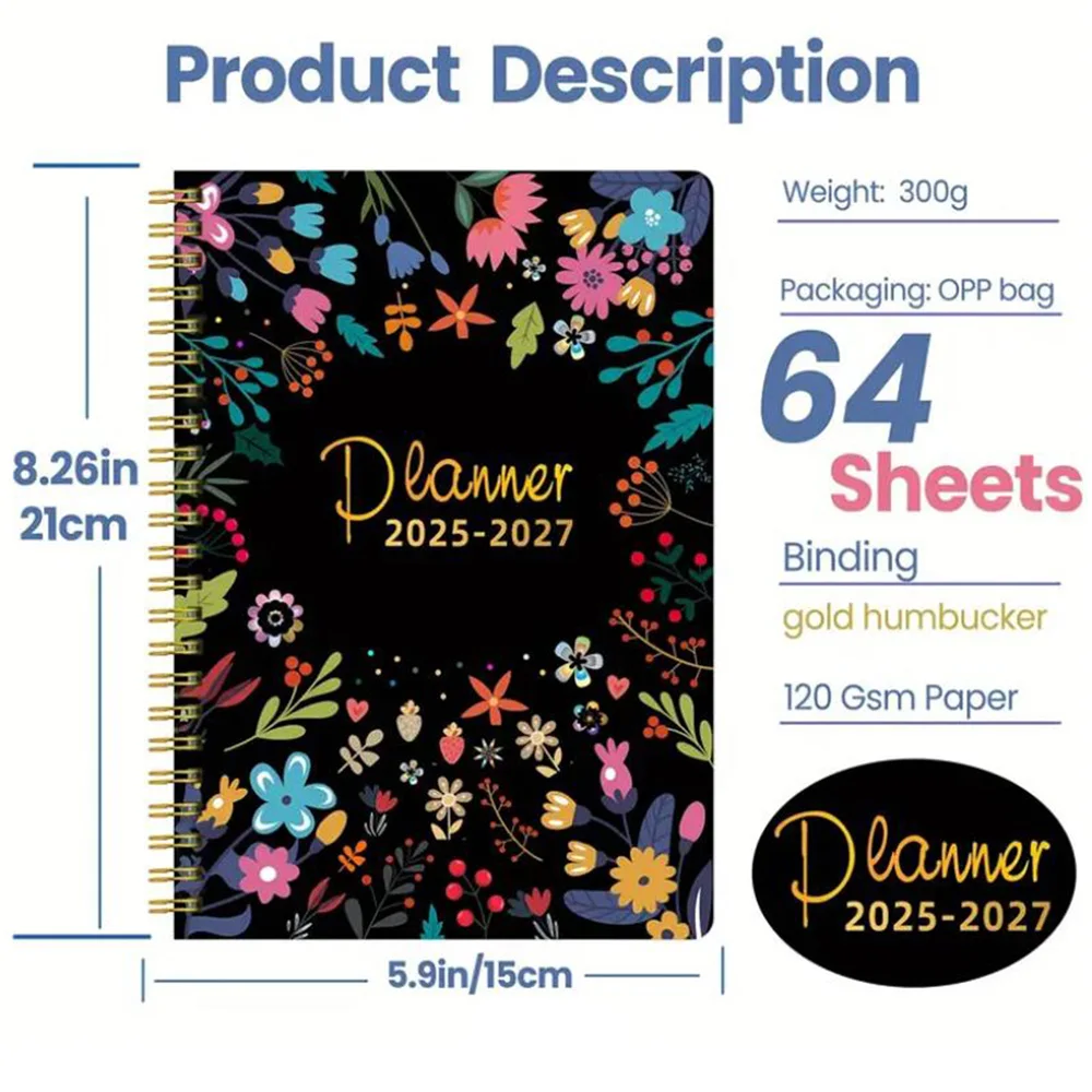 This 2025-2027 spiral-bound planner features a hardcover design with weekly and monthly layouts from July 25th, 2024, to June 26th, 2027, measuring approximately 21 x 15 cm with a 0-2 cm manual measurement deviation. Available in stylish blue and black options, this durable planner is perfect for staying organized over three years. It supports multiple payment methods, including Visa, MasterCard, Maestro, and bank transfers. Shipping typically takes 15-45 days internationally, with a satisfaction guarantee if undelivered within 60 days. Sold individually or as a set of two, it is an ideal tool for planning and time management.