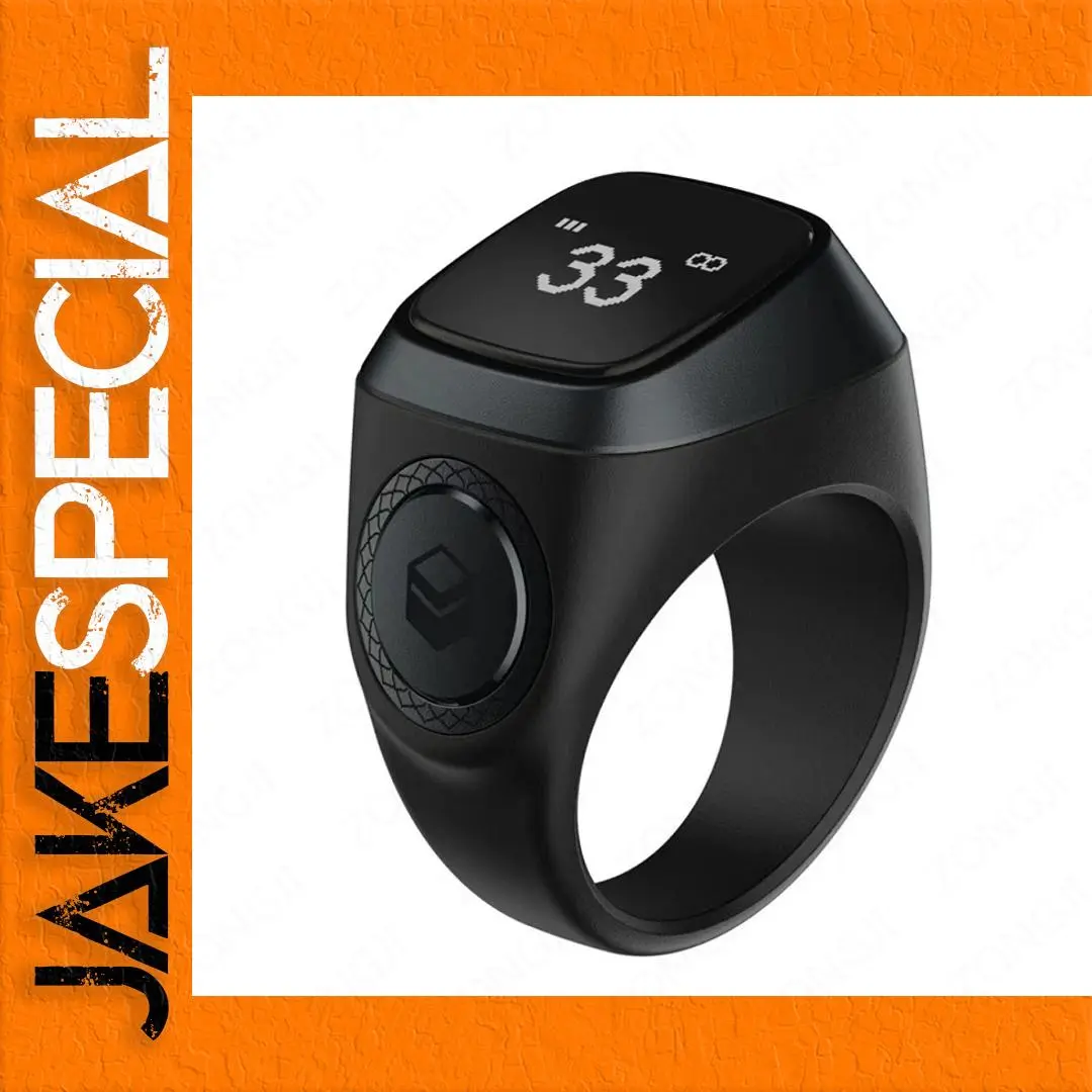 The 2025 IQibla Smart Zikr Ring combines modern technology with a sleek design, featuring a minimalist black plastic band and a lightweight construction of just 7.7g. It includes a clear display screen that shows numerical readouts for tracking Zikr or tasbih counts, alongside a handy steps tracker function. With a 40mAh battery capacity, a textured circular button for easy navigation, and a waterproof rating of 3ATM, this ring is designed for durability and everyday use. Available in sizes 18, 20, and 22, and colors such as Blue, Pink, Brown, White, Green, Black Gray, Purple, and Black.