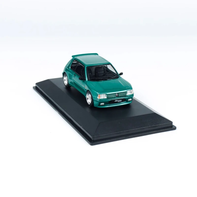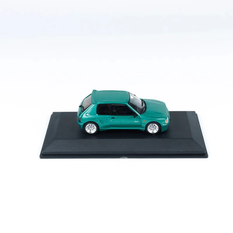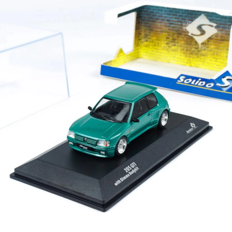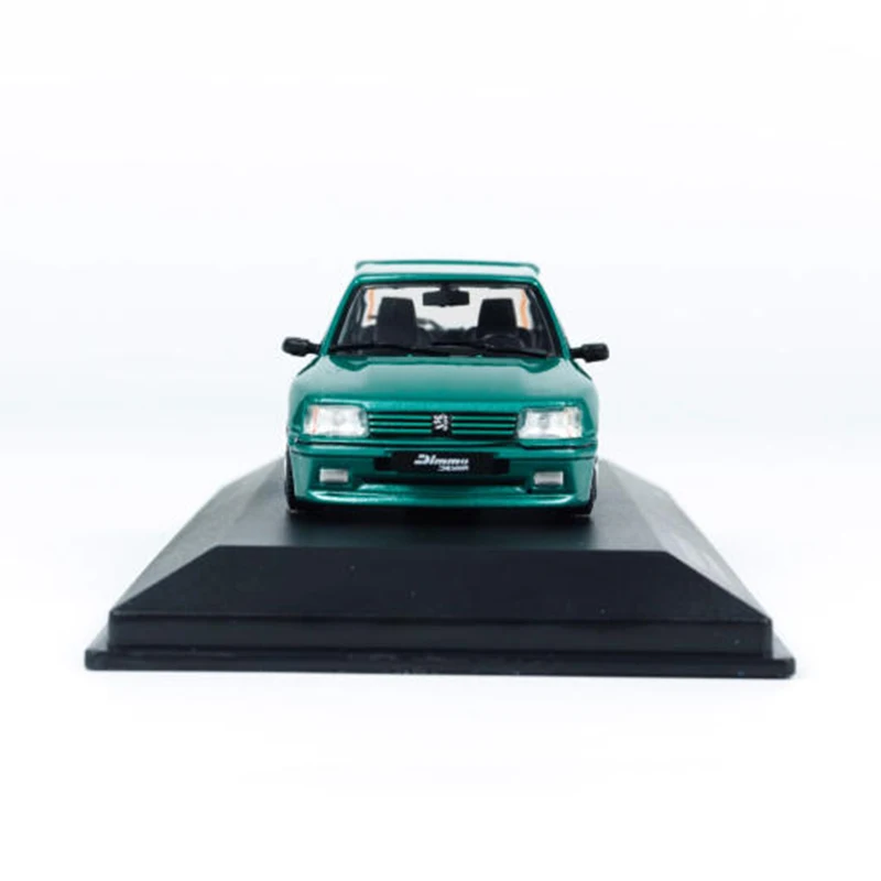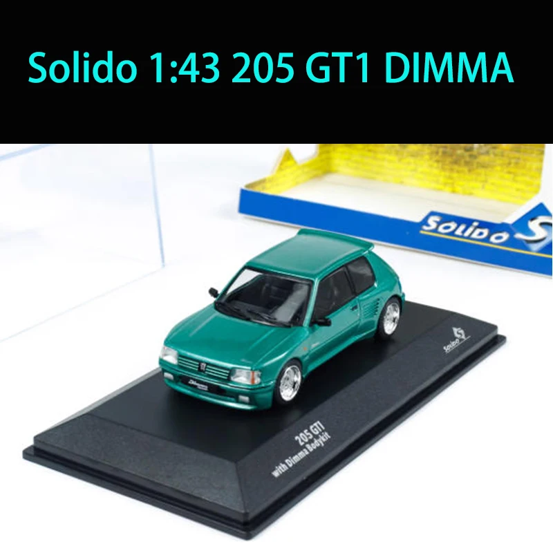 The Solido 1:43 scale diecast model of the 205 GT1 DIMMA is a stunning replica crafted from high-quality alloy material. Its vibrant teal color with a glossy finish enhances its sporty aesthetic, showcasing prominent body lines and detailed features such as a central lion emblem on the grille, polished silver multi-spoke wheels, and rubberized tires. This model requires no batteries, making it an ideal static display piece for collectors and enthusiasts. Designed for collection, decoration, or as a distinctive gift, it sits elegantly on a black rectangular display base, exuding craftsmanship and attention to detail. Ideal for displaying your passion for automotive history.