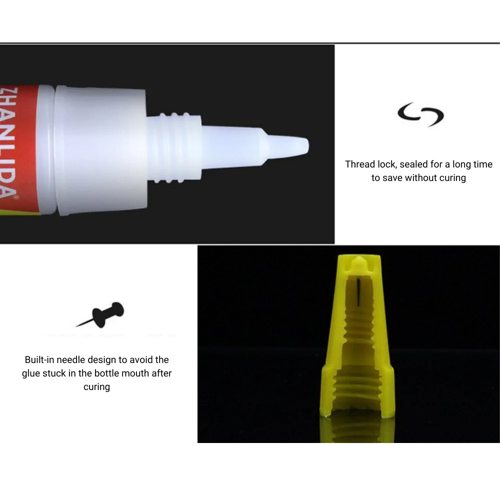 This 20g black instant tire repair adhesive features a high-concentration chloroprene-phenolic formula that cures at room temperature with initial setting in 4-6 minutes and full cure within 24-48 hours. It provides a tensile strength of 15 psi and shear strength of 11 MPa, offering strong, flexible, and impact-resistant bonds. Waterproof, temperature-resistant from -30°C to +90°C, and suitable for materials like leather, wood, metal, ceramics, acrylic, electronics, jewelry, and shoe materials. Designed for precise application with a pin-in-lid applicator to prevent clogging, it is non-toxic, non-flammable, environmentally friendly, and adheres well over large gaps.