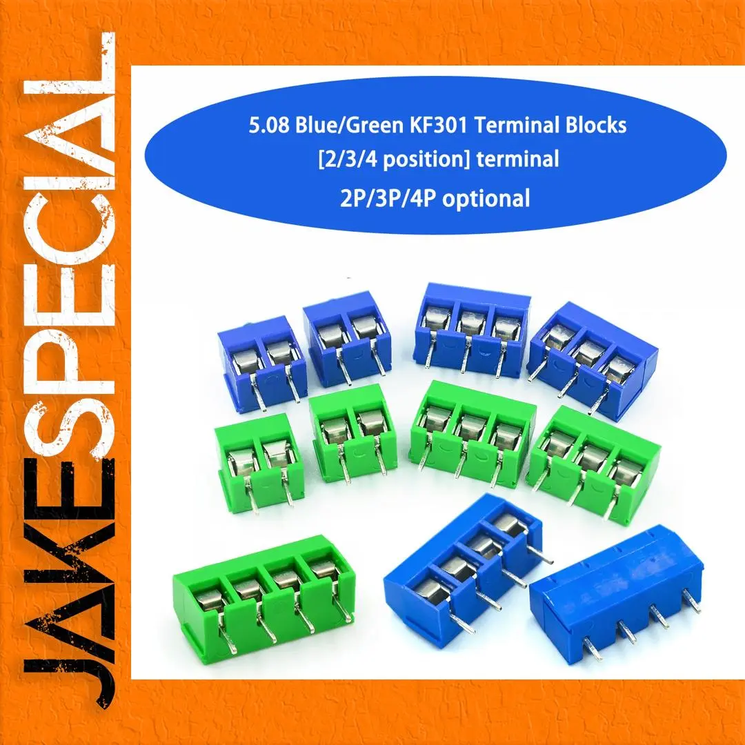 Introducing the PENGHEKEJI 20pcs KF301 plug-in screw connectors, designed to meet your electronic connectivity needs with precision. This collection features various configurations, including KF301-2P, KF301-3P, KF301-4P, KF301-5.0-2P, KF301-5.0-3P, and KF301-5.0-4P, with a standard pin spacing of 5.08mm. Available in vibrant blue and green colors, these connectors are crafted from smooth, glossy plastic, ensuring durability and reliable performance. The clear gaps between the metal pins and the connector body facilitate easy wiring insertion, making them ideal for voltage regulation applications. Experience versatility and reliability with this essential component set.