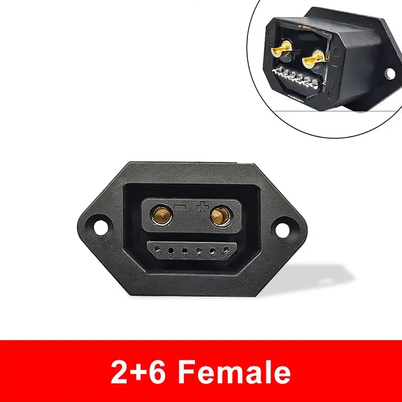 - This connector set includes sturdy male and female units supporting 2+4 and 2+6 configurations, ideal for low-voltage lithium battery charging systems in electric bikes and vehicles.
