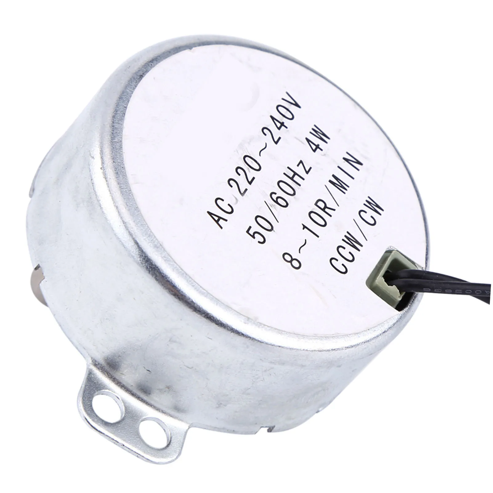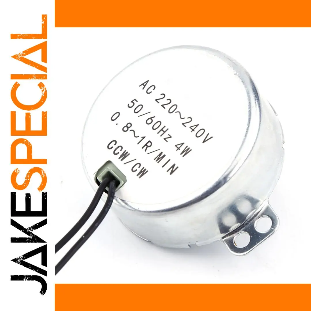 Experience seamless operation and reliable performance with this high-quality synchronous geared motor. Designed for precision control in various appliances, it features a sleek metallic finish, showcasing a modern industrial look that complements any project. Its lightweight, compact cylindrical shape ensures easy installation and integration into your equipment. The white flat top surface with black specifications not only adds a minimalist aesthetic but provides clear access to operational details. Powered by a 4W motor with adjustable speeds ranging from 0.8 to 10 RPM, this device ensures smooth movement and efficient functionality. Whether you're enhancing a ventilation system, display shelf, or lighting fixture, this motor offers durability and performance you can trust.