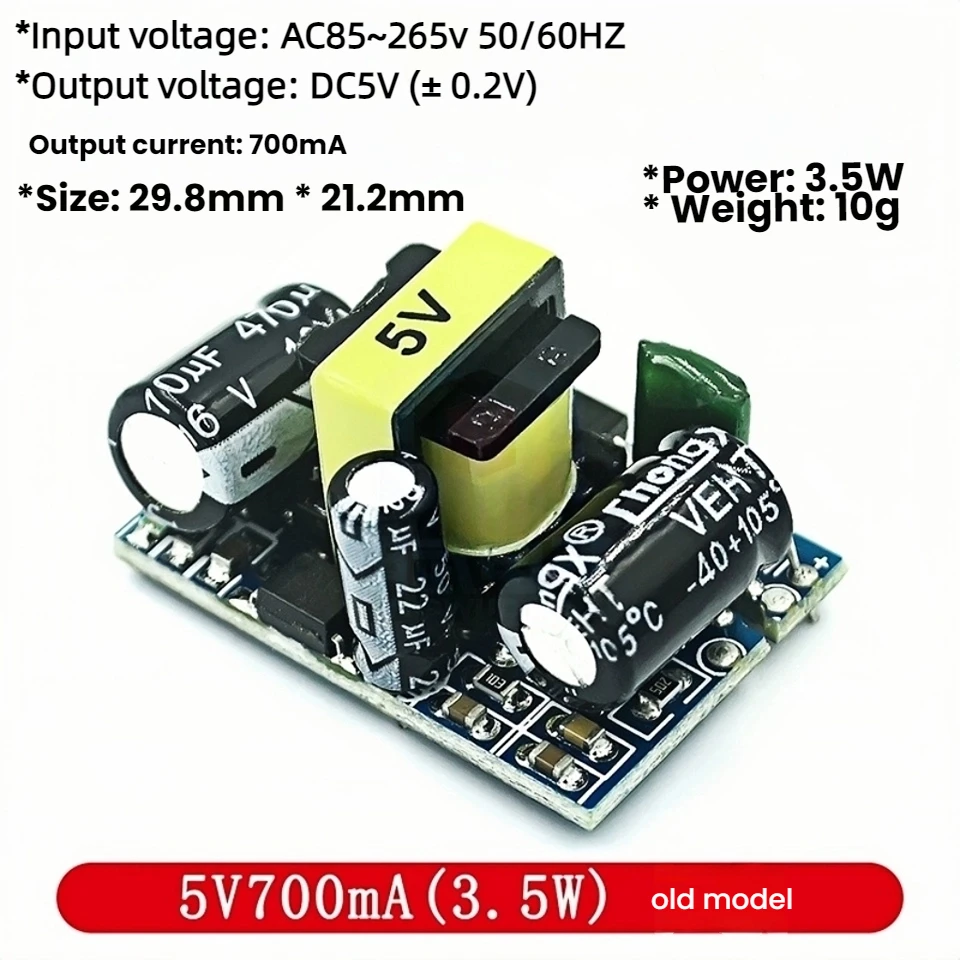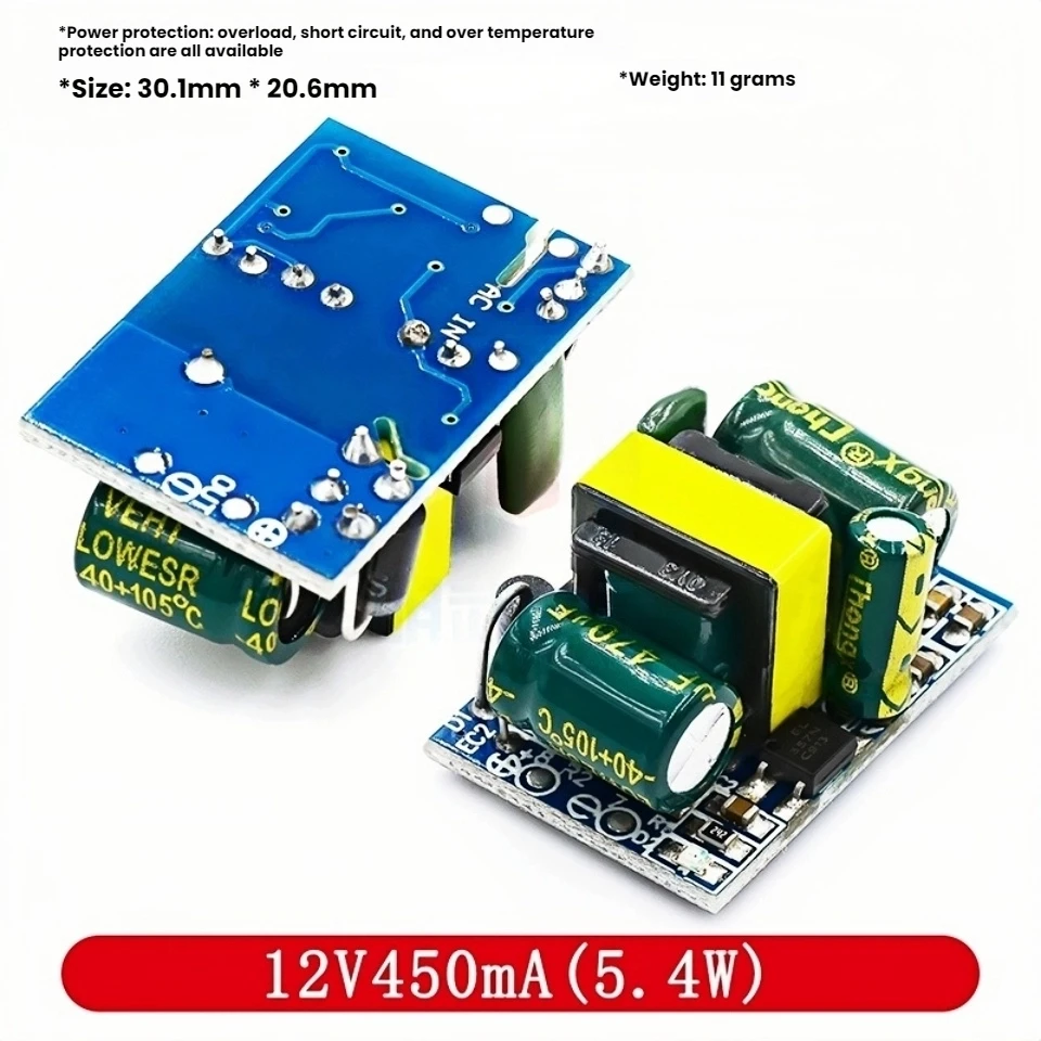 - This compact buck converter module step downs 220V AC to 5V DC with 700mA current, or outputs 12V DC at 300mA, 400mA, or 450mA, perfect for various electronic applications.