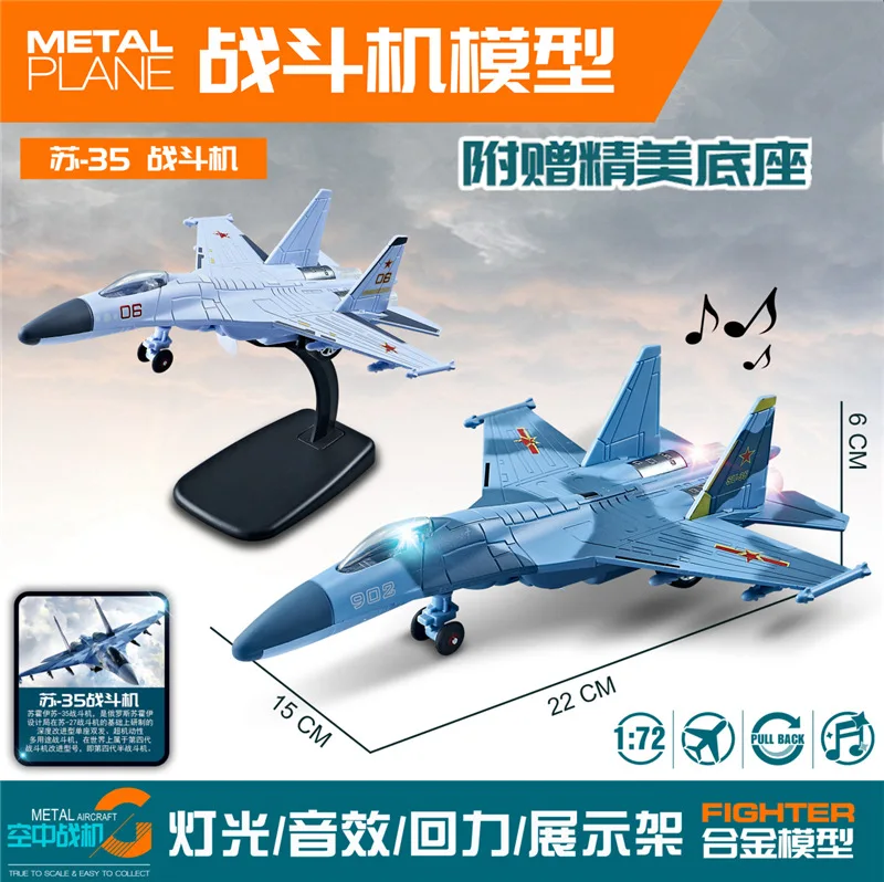 The 22CM Alloy Fighter Model collection features an impressive variety of iconic aircraft designed with remarkable attention to detail. Each metal diecast model not only captures the aerodynamic shapes of real-world fighter jets but also showcases stunning color schemes. Models available include the F-16, SU-35, B-2A, F-18, F-35, and SR-71, each measuring approximately 22 centimeters. The designs incorporate intricate detailing such as cockpit windows and wing structures, making them stunning display pieces. Whether you're a collector or an aviation enthusiast, these aircraft models are sure to impress with their artistry and craftsmanship.
