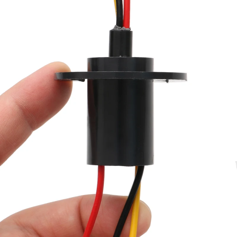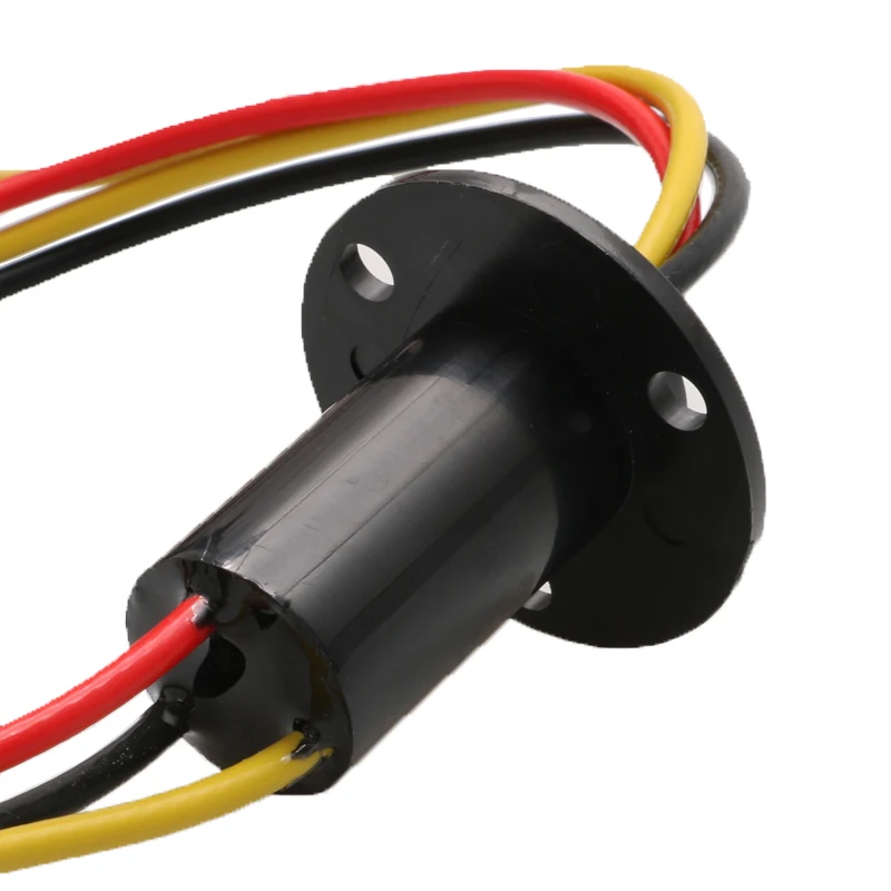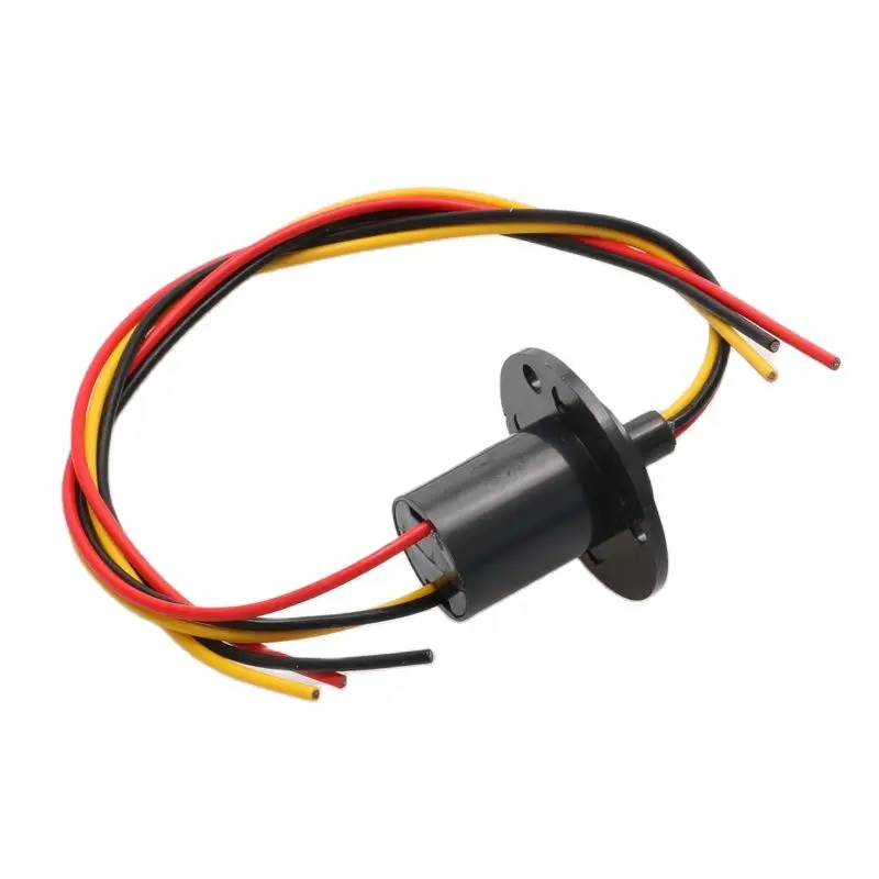 Experience seamless 360-degree rotation with this compact slip ring, designed to reliably transfer signals and power in your advanced machinery. With a diameter of only 22mm, it boasts a sleek cylindrical shape made from sturdy engineering plastics for durability. Its minimalist design includes four mounting holes on a circular flange, making installation straightforward. Four insulated wires— red, black, yellow, and gray— extend from the side, offering flexibility for power and data transfer. Capable of supporting speeds up to 200 RPM and rated for 15A or 30A per channel depending on the option, this slip ring ensures efficient operation. Its gold contact material guarantees low electrical resistance and longevity, making it ideal for demanding industrial or robotics applications.