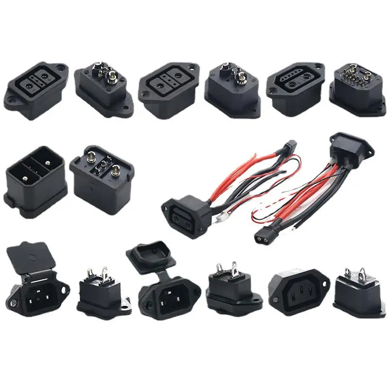 - This high-quality electrical socket set includes durable black plastic housings with reinforced flanges for sturdy mounting in e-bikes and lithium battery systems.
