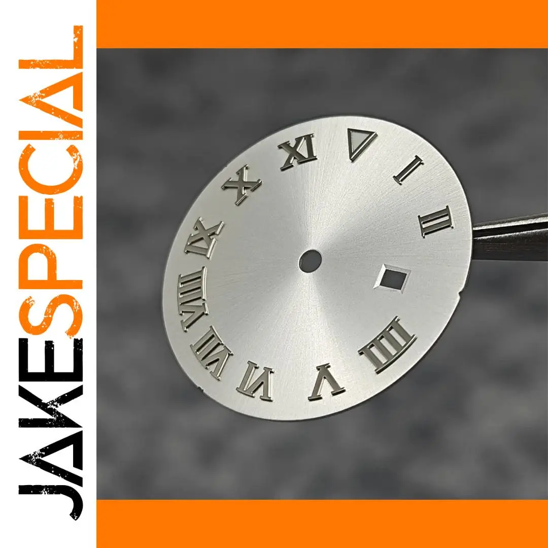 This elegant watch dial is designed specifically for the NH05 and NH06 movements, bringing sophistication to your timepiece. Measuring 24.2mm in diameter, it features a stunning brushed metallic finish with Roman numerals from I to XII. The prominent markers at III, VI, IX, and XII add a refined touch to its design. The smooth silver surface enhances the contrasts of the raised numerals, making it a perfect choice for collectors and enthusiasts looking to customize their watches. A cutout between VIII and IX provides space for additional features, making your wristwatch truly unique. Whether for repairs or upgrades, this watch dial is a timeless addition.