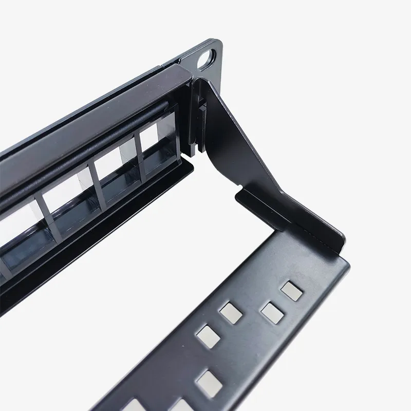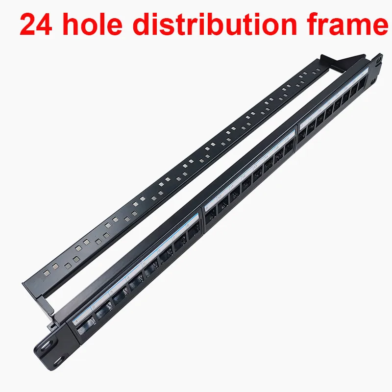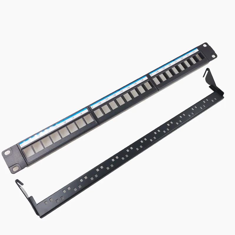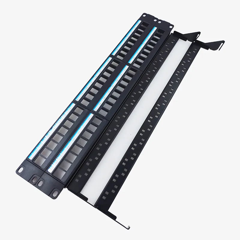 This durable unshielded rack-mounted patch panel is available in 24-port and 48-port configurations, designed for standard 19-inch racks. Constructed from high-quality metal and PC plastic, it supports Category 5 and Category 6 Ethernet connections, ensuring reliable network performance. The panel features a sleek, flat rectangular design with white port labels for easy identification and organized cable management. Its single-side bracket structure allows secure mounting in professional network setups. Certified with CE standards, this high-functional panel offers a practical, robust solution for network distribution, blending industrial durability with a clean, minimalist aesthetic.