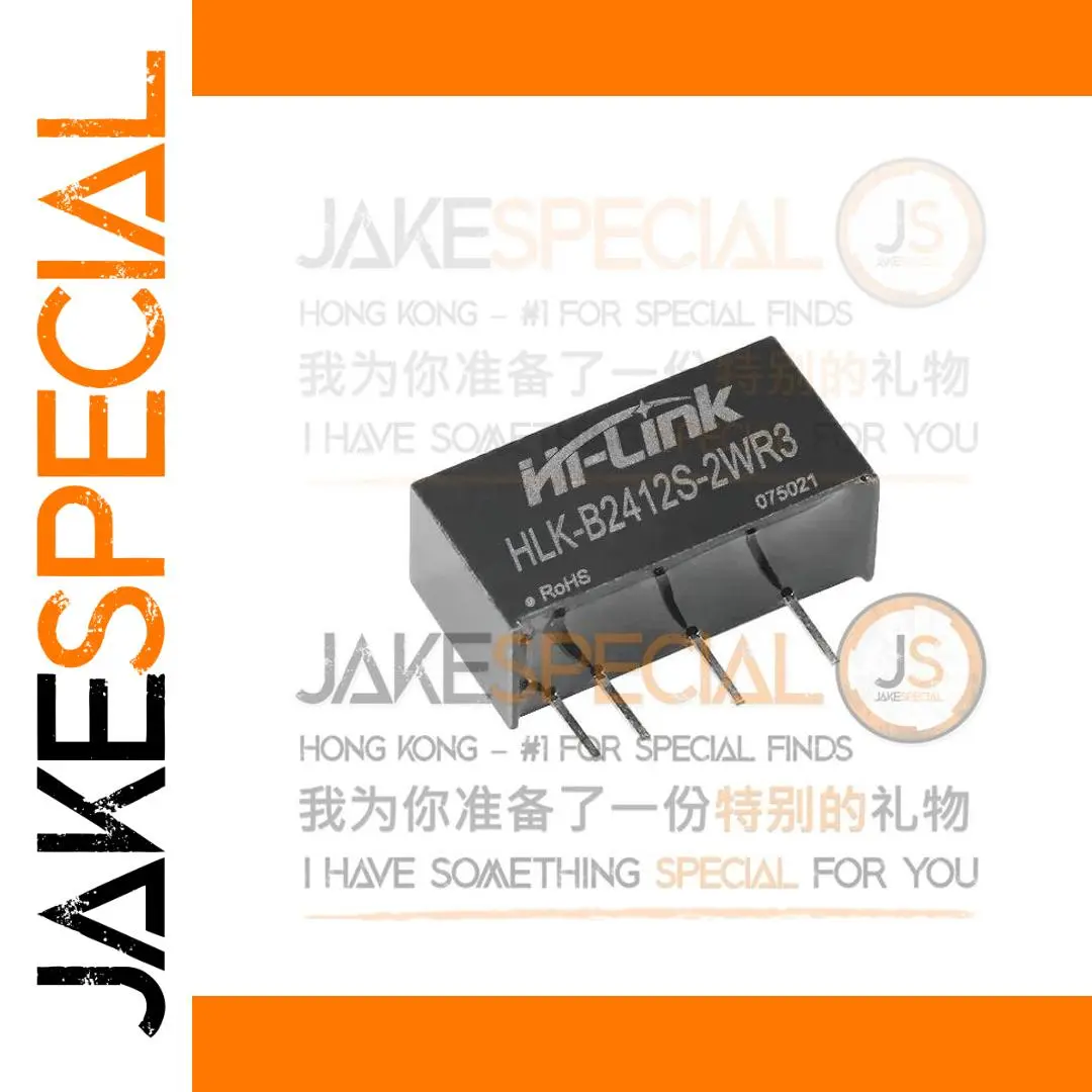 Imagine seamlessly converting 24V DC input into a stable 12V output, enhancing your electronic projects or systems. This minimalistic, rectangular module features a smooth matte black plastic casing, emphasizing a modern, professional look. The clean design is accentuated by crisp white printed text displaying the model number “HLK-B2412S-2WR3” and essential specifications, ensuring clarity and confidence. Thin, shiny metallic pins protrude from the front, providing reliable electrical connections. This module's thoughtful design combines aesthetics with functionality, making it an ideal choice for secure, efficient power conversion. Its compact size and precise engineering make installation straightforward, giving you peace of mind in your technical setup.