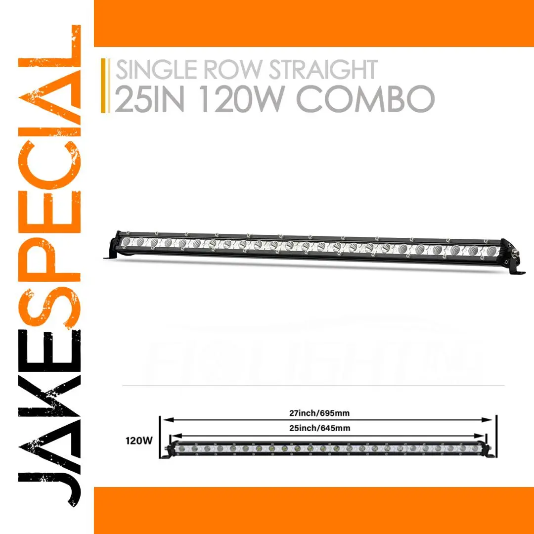 Experience superior illumination with this sleek 25-inch single-row LED light bar, designed to enhance your vehicle's visibility during off-road adventures or outdoor activities. Crafted from durable die-casting aluminum alloy in matte black, it seamlessly combines rugged durability with a contemporary look. The clear polycarbonate lens, slightly curved to streamline airflow, protects a high-powered LED array that delivers bright, uniform light output. With a combination beam pattern of 30° spot and 75° flood, it provides versatile illumination for various terrains and conditions. Whether mounted on a truck, boat, or outdoor setup, this light bar ensures your safety and performance with over 30,000 hours of reliable operation. Its IP67/IP68 rating guarantees waterproof and dustproof durability, ready for any environment.
