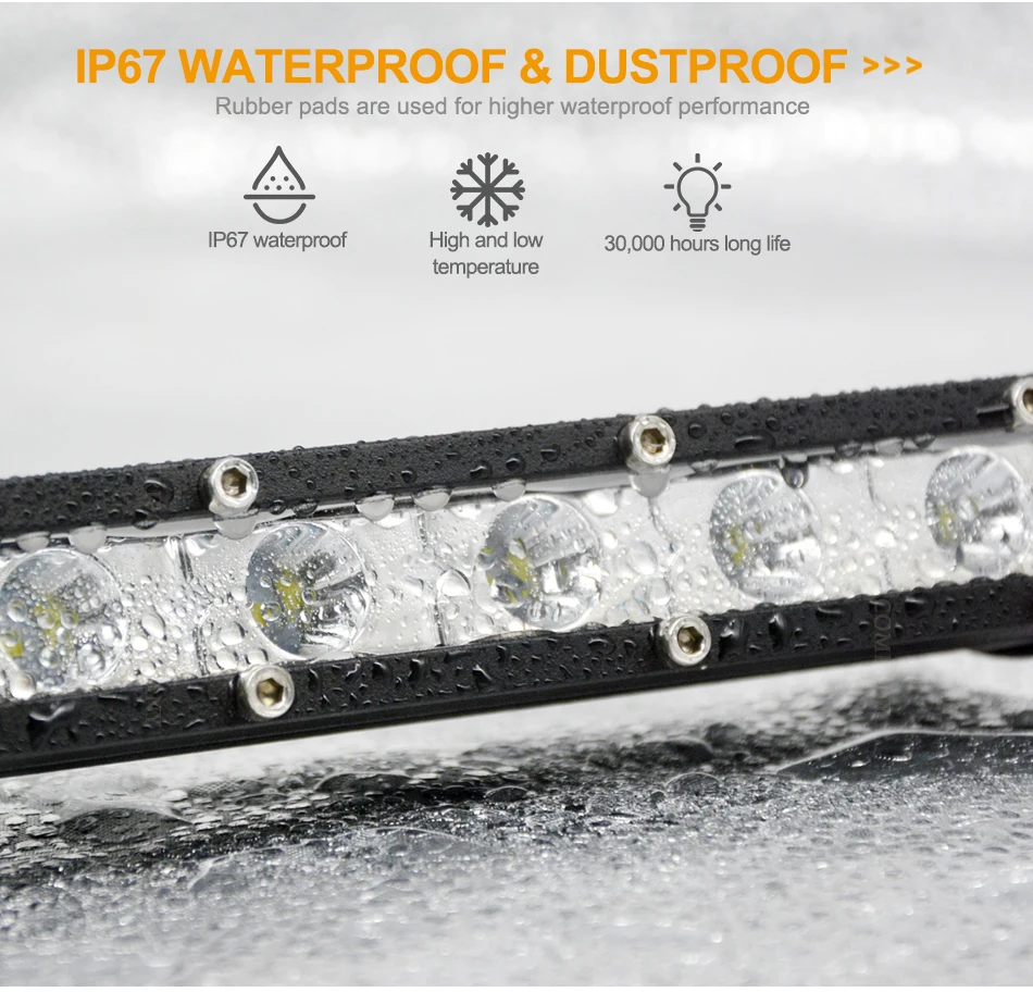 - Constructed with high-quality 120W LED chips, this light bar offers powerful, high-brightness illumination with wide coverage for off-road, marine, or outdoor use.