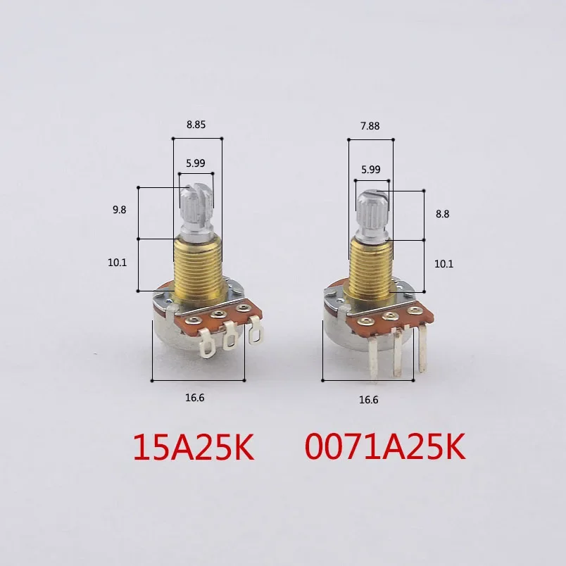 Enhance your electric guitar or bass with the TQ A25K Brass Shaft Potentiometer. This high-quality 25K potentiometer is designed for active pickups, ensuring smooth and precise volume and tone control. With two nuts and one washer included for easy installation, you can easily elevate your musical experience. Masterfully crafted and reliable, this potentiometer is essential for any serious guitarist looking to refine their sound. Imagine the seamless adjustments you’ll make on stage or in the studio, making every note resonate beautifully. Upgrade your instrument today and enjoy the difference in your performance!