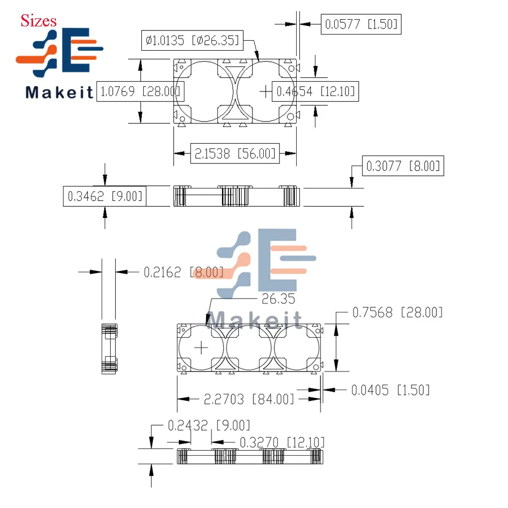 - Dimensions perfectly match 26650 Li-ion batteries, with modular layout to facilitate customizable battery pack setups.