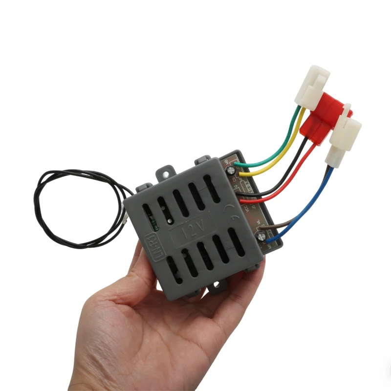 - The gray receiver modules feature vented, textured designs with vertical grooves, built for durability and efficient signal reception, compatible with a variety of children's electric vehicles marked “27MHZ.”