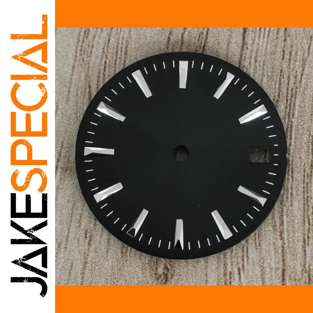 Embrace elegance with this 28.5mm watch dial, designed for the NH35/36/4R/7S movement. Its sleek black matte finish exemplifies modern sophistication, while the polished silver triangular hour markers enhance visibility against the dark backdrop. A minimalist approach, accentuated by subtle minute markings, ensures clarity and style, making it a perfect addition to your watch collection. Imagine how this refined dial will elevate your watch, bringing a touch of class to any outfit. With a practical rectangular cutout for functionality, it masterfully balances form and purpose, ensuring your watch not only looks amazing but also serves its timing needs effortlessly.