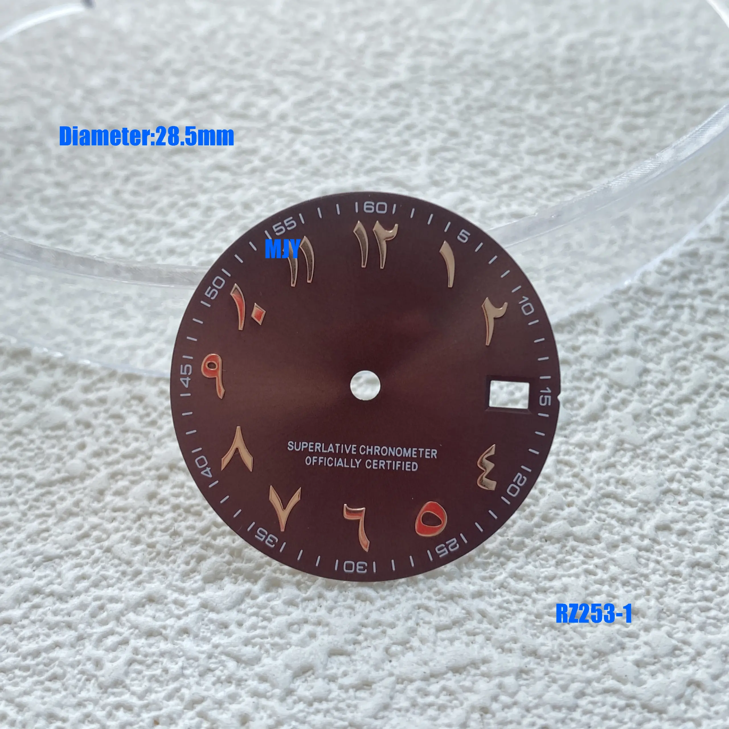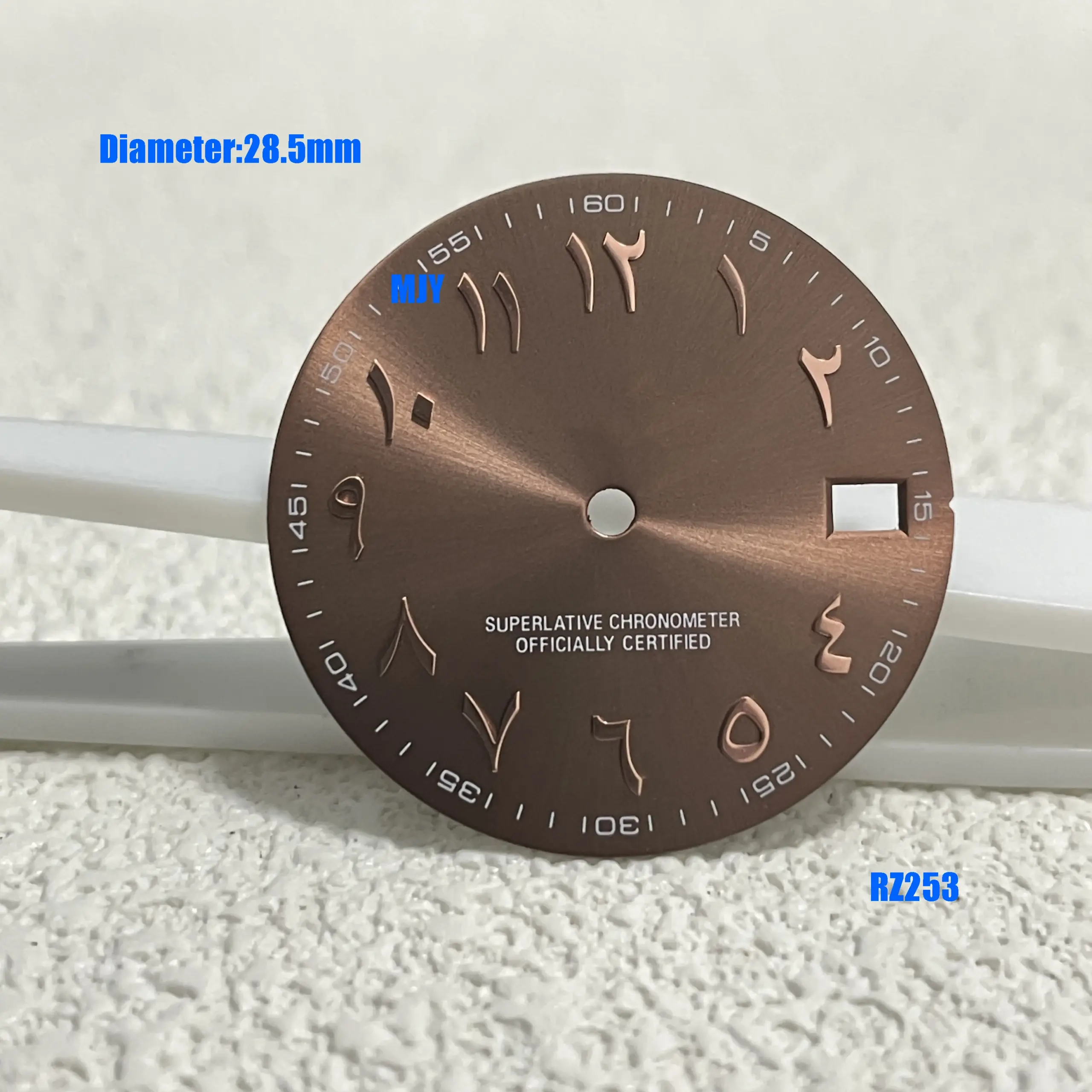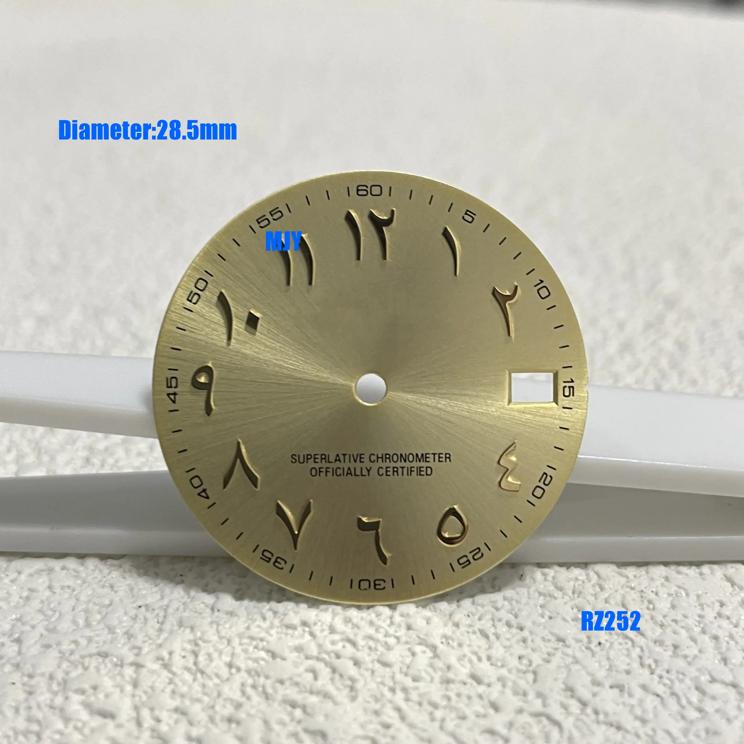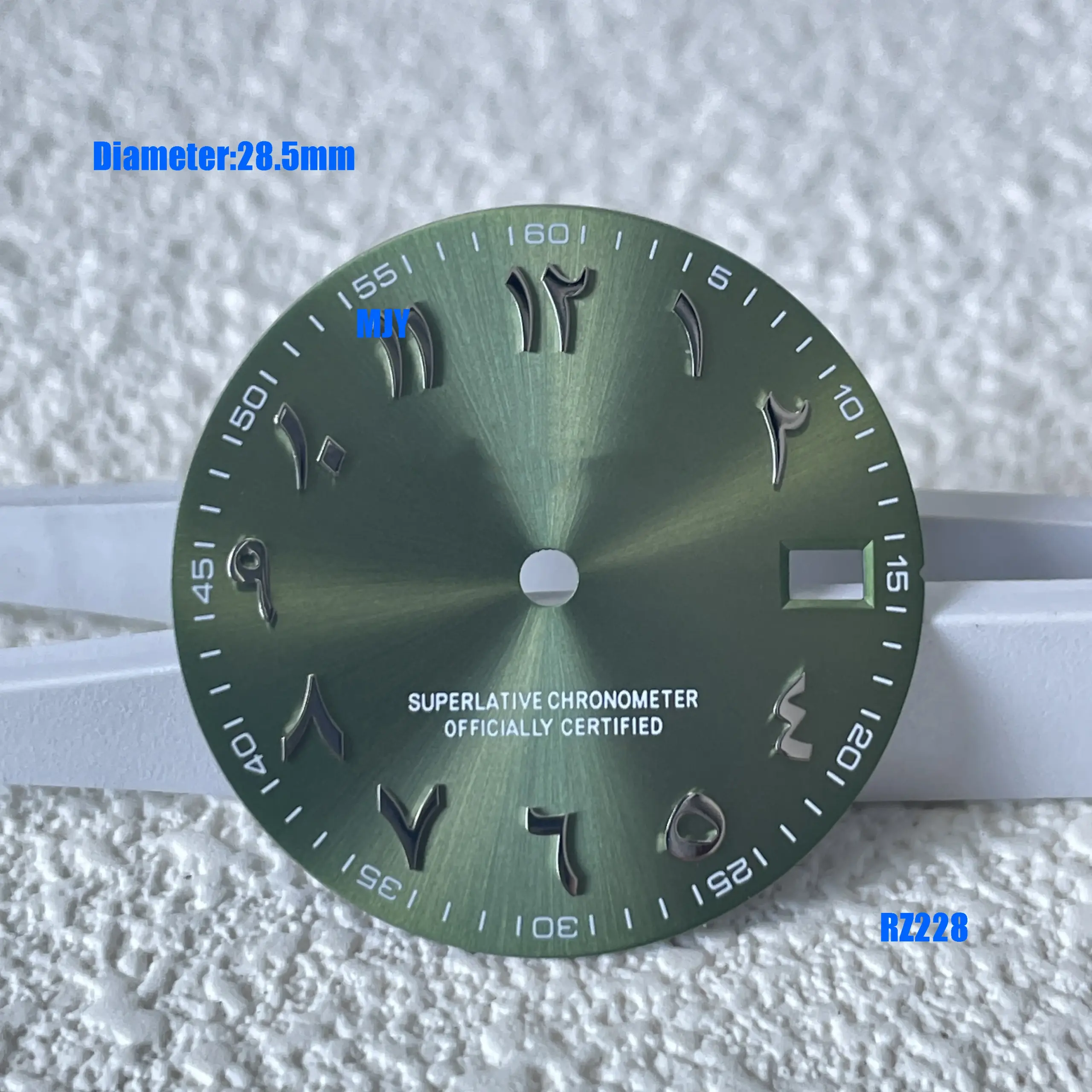 Imagine elevating your watch with this exquisite blue Arabic logo dial, precisely crafted to bring a sophisticated touch to your timepiece. Measuring approximately 28.5mm, this dial features a sleek, deep blue background complemented by a distinctive no luminous Arabic green logo at the center. The delicately curved Arabic numerals add a modern yet elegant flair to your watch’s face. Designed for compatibility with NH35 or NH36 automatic movements, this dial also showcases a rectangular date window at 3 o'clock and a centrally positioned hole for the hands, ensuring seamless assembly. Its high-quality finish and meticulous printing deliver a refined aesthetic, allowing you to create a custom watch that truly reflects your style and passion for fine craftsmanship.