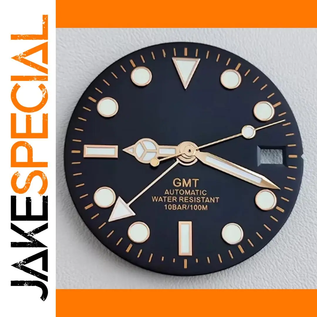 Elevate your timepiece with this exquisite GMT watch dial, designed for NH34 and NH35 movements. The striking deep black matte finish creates a sleek and modern aesthetic, while the elegant rose gold hour markers radiate sophistication. With luminous fills, these markers ensure optimal visibility in low-light conditions. Not only does this dial feature unique hands, including a distinct fork-like GMT hand, but it also includes a date window for added practicality. Imagine enhancing your watch collection with this remarkable accessory, showcasing both style and functionality.