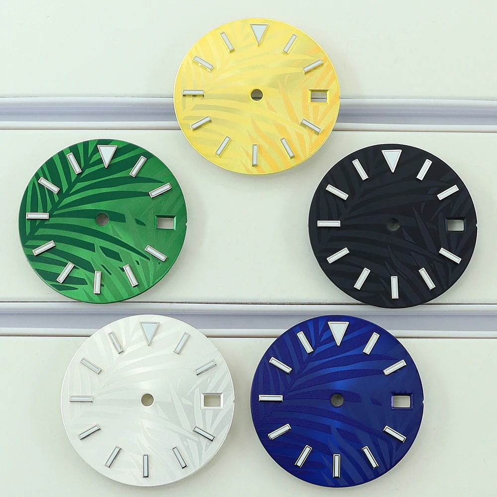 Transform your watch with this stunning 28.5mm luminous watch dial, designed for precision and durability. Crafted from copper, it features a sleek, thin profile of approximately 0.04mm, ensuring seamless compatibility with your watch movement. Compatible with NH35, NH34, and NH36 movements, this dial is perfect for repairs or customizable upgrades. Its luminous properties offer readability in low light conditions, while its range of stylish colors allows you to personalize your timepiece. Whether you're restoring a vintage watch or creating a new one, this high-quality dial elevates your watch's appearance and functionality. Easy to install, it’s an ideal choice for watch enthusiasts and professional repairers alike who value craftsmanship and style.