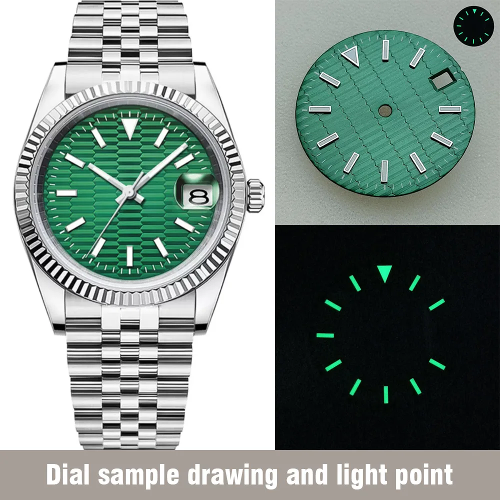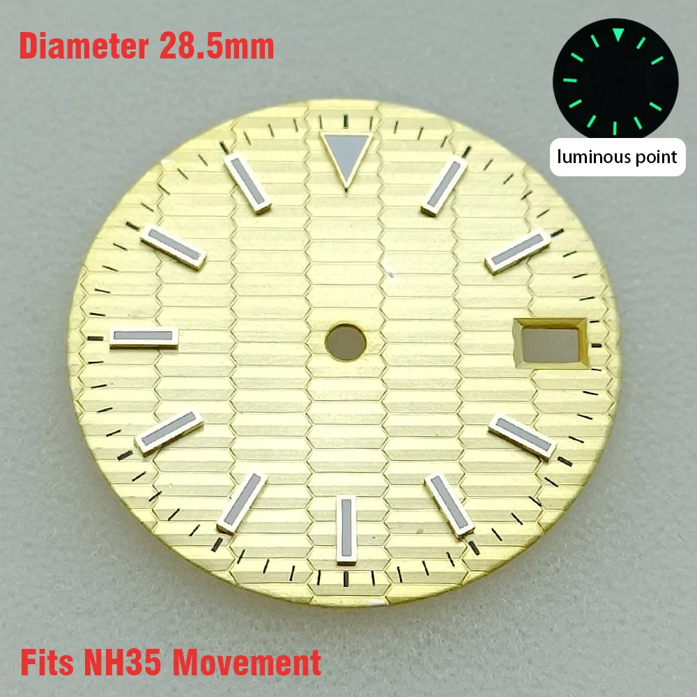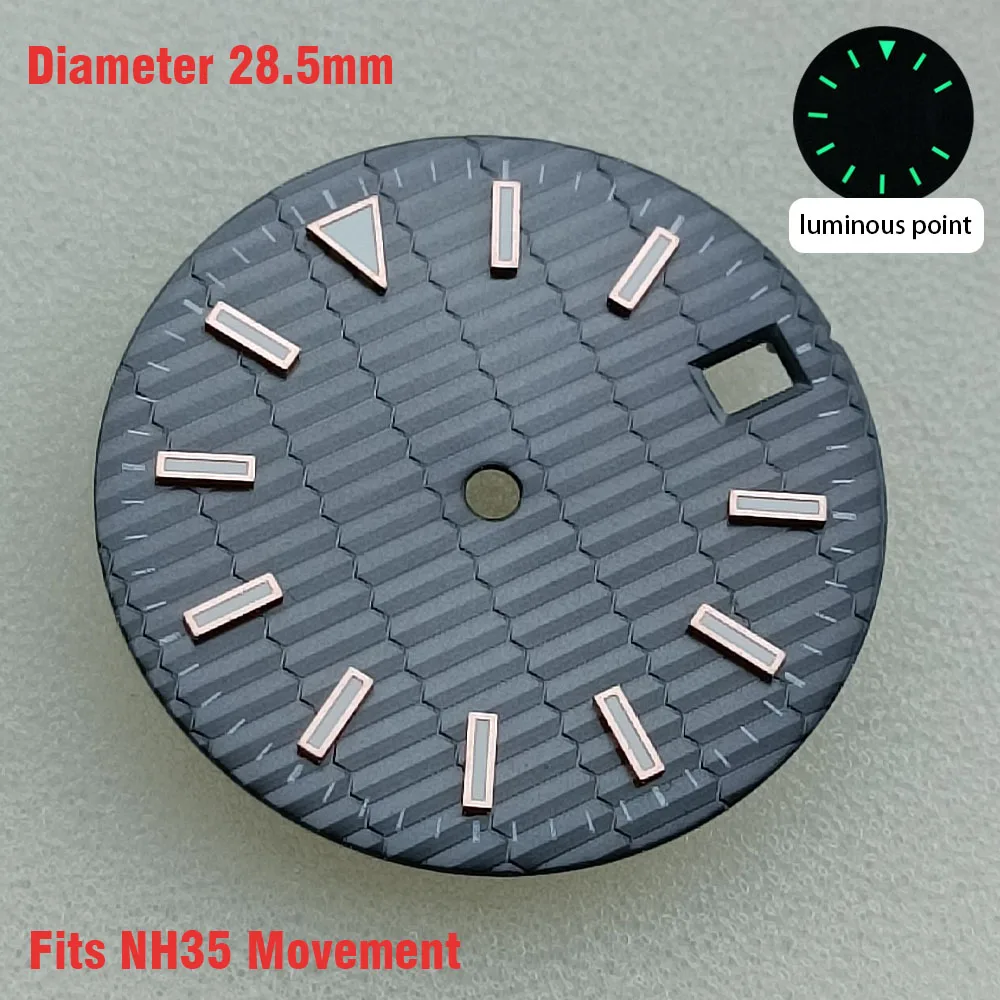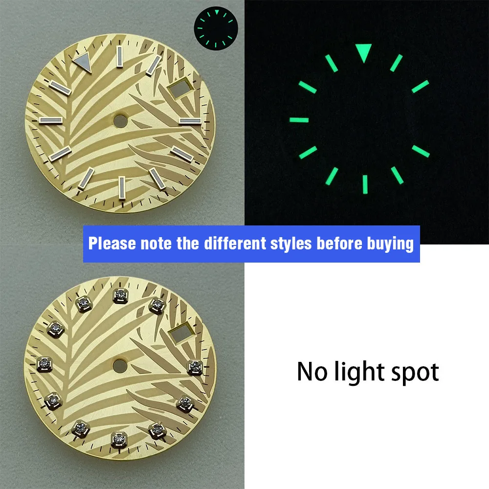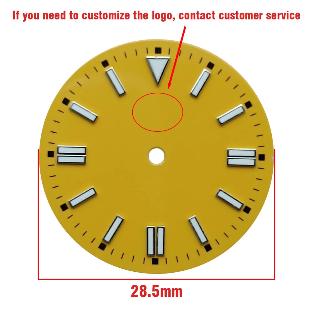 Experience a stunning transformation for your watch with this high-quality, luminous 28.5mm dial compatible with NH35, NH36, 8215, and 2836 movements. Crafted from durable alloy, it offers a sleek, modern aesthetic that complements various watch styles. Available in multiple vibrant colors, including silver, rose, and gold nail accents, each dial features a distinct “No Logo” design that emphasizes clarity and elegance. The luminous surface ensures visibility in low light, making it perfect for everyday wear or special occasions. Its versatile design enables easy installation with a wide range of watch cases. Bring your watch collection to life with this striking, dependable dial designed to enhance your wristwatch's overall look and functionality.
