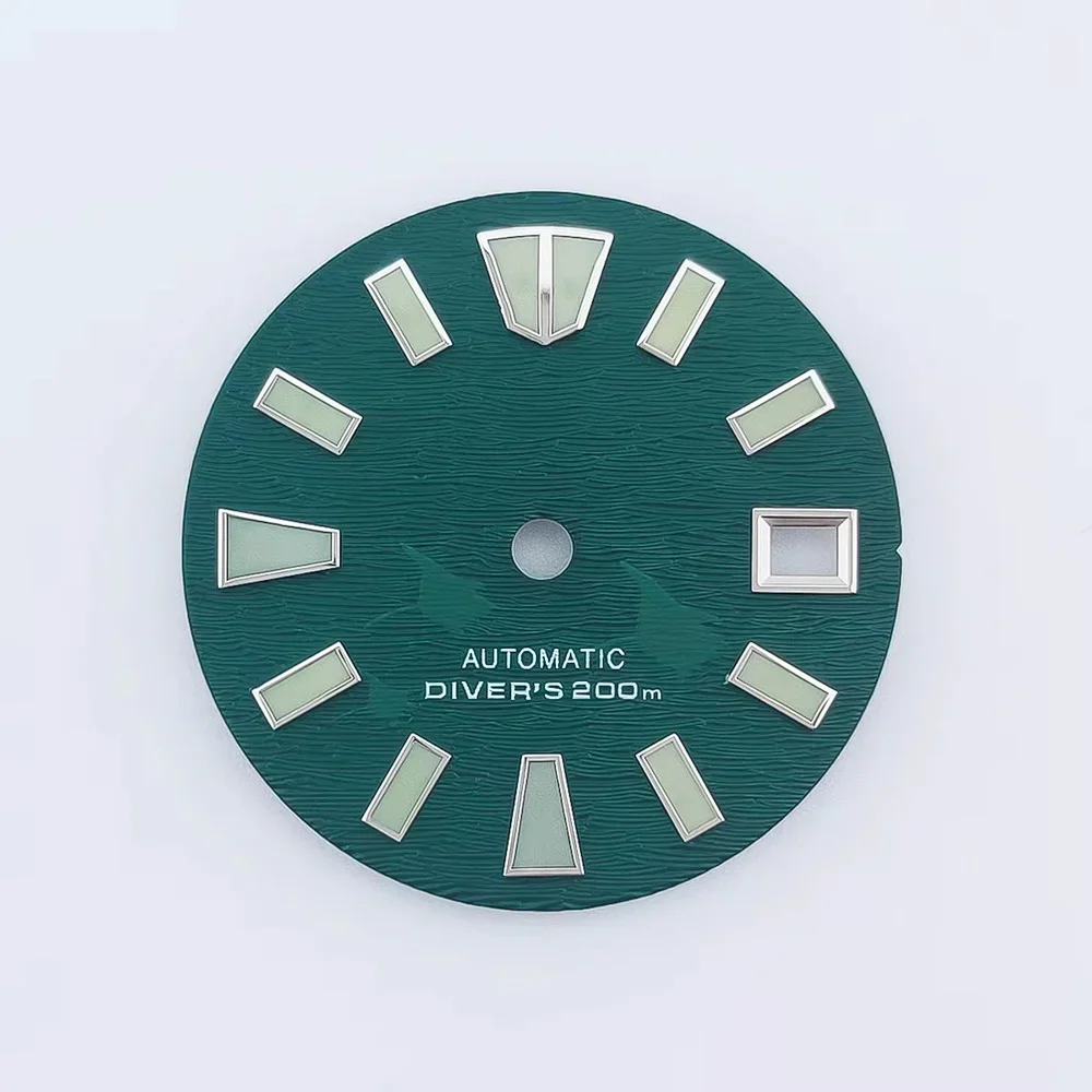 Elevate your watch collection with this stunning 29mm customized green luminous dial, perfectly designed for seamless compatibility with NH35, NH36, and 7S26 movements. Crafted from high-quality brass, it offers a durable, single-layer construction with a stylish silk-printed scale that adds a distinctive touch to your timepiece. Its vibrant green luminous display ensures exceptional visibility in low-light conditions, making it a functional yet fashionable upgrade. Whether you're customizing a new or existing watch, this dial allows you to achieve a sleek, modern look that stands out and enhances your watch’s overall aesthetic. Its precise fitment guarantees easy installation, adding a professional touch to your DIY or repair project.