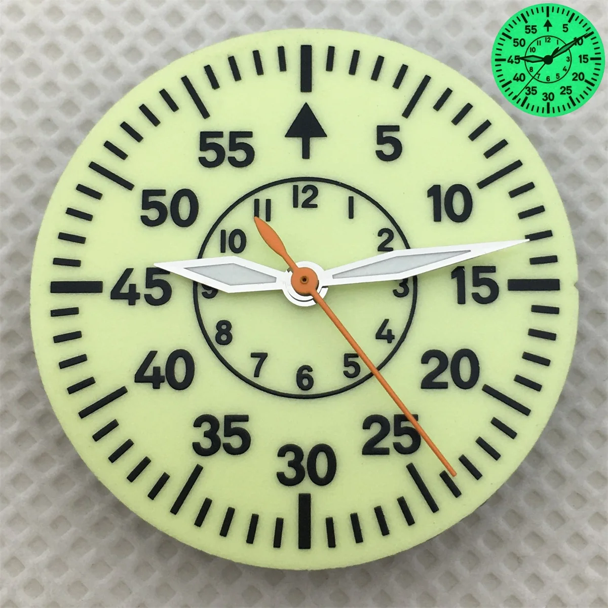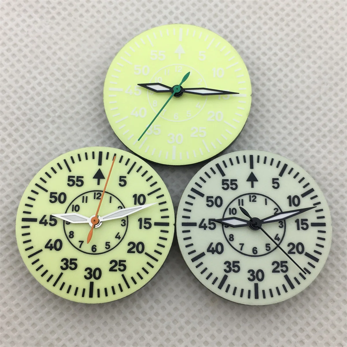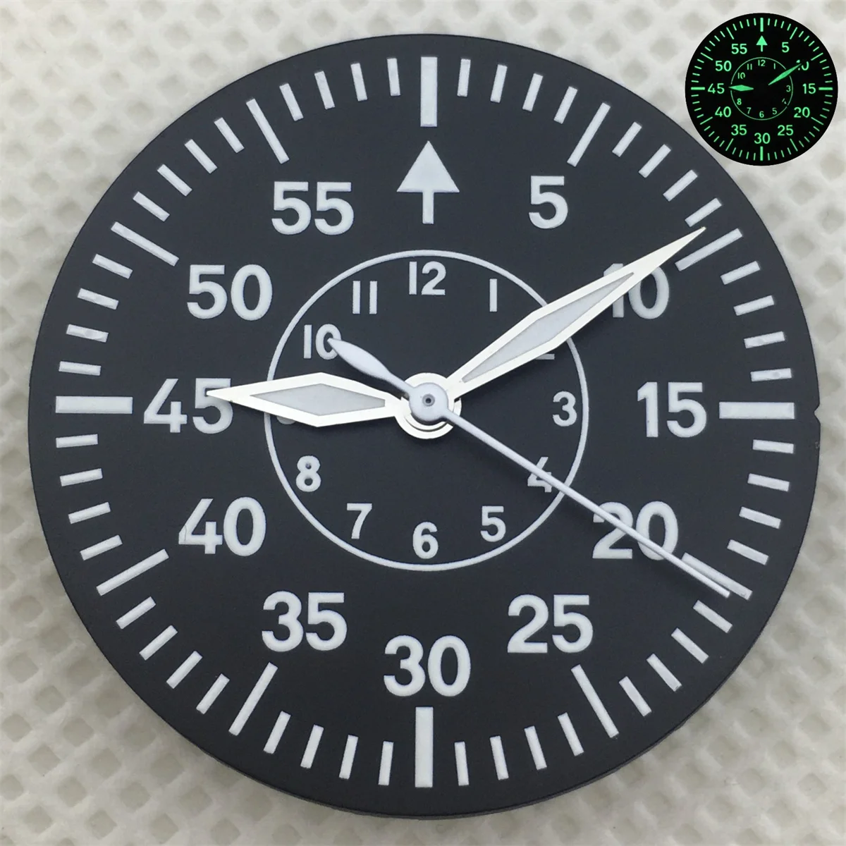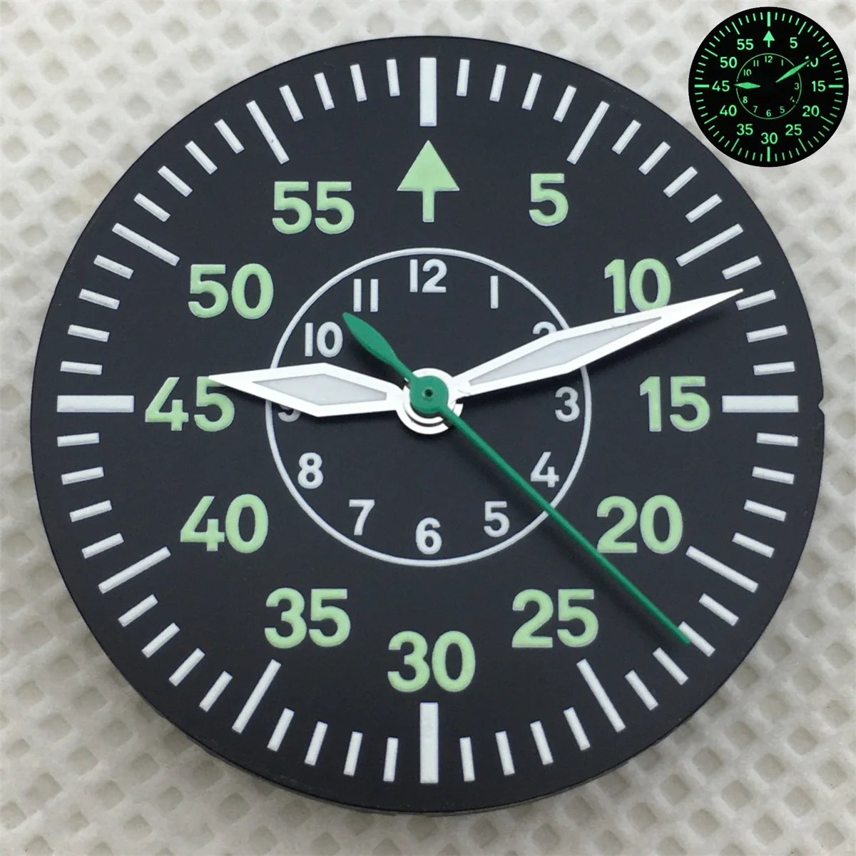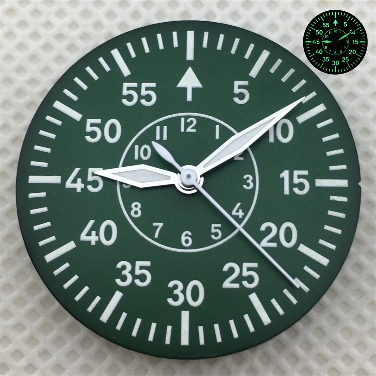 Enhance the look of your watch with this high-quality 29mm stainless steel black pilot dial case featuring a vibrant green luminous background. Designed to perfectly fit compatible movements such as NH34, NH35, NH36, NH37, NH38, NH39, ETA 2824, 2836, PT5000, Miyota 8215, and DG 2813, this case offers a sleek, durable construction that elevates your watch’s style and functionality. The luminous green glow ensures visibility in low-light conditions, allowing you to enjoy your timepiece day or night. An ideal choice for customizing or repairing your watch, this case provides a reliable and stylish foundation for your watch project.