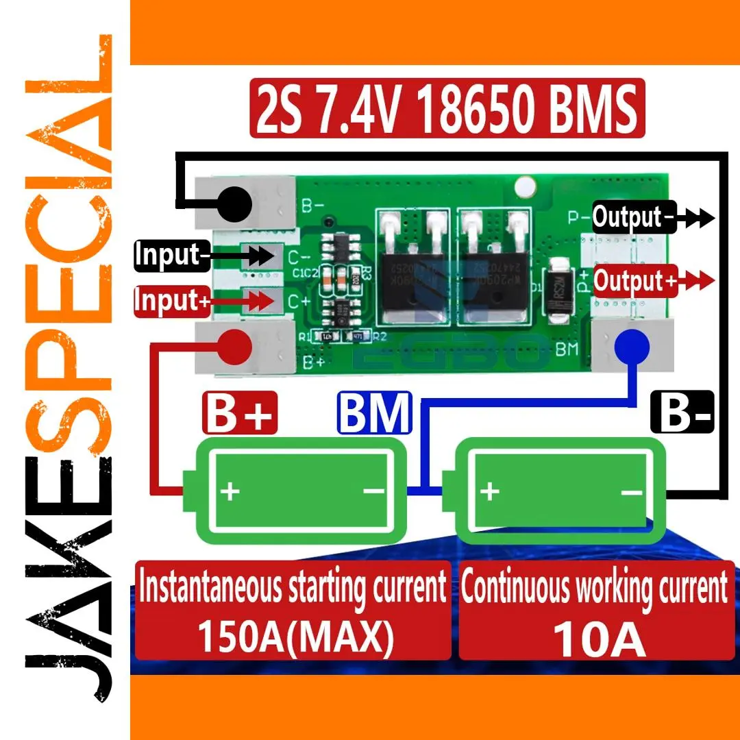 Experience peace of mind with this expertly designed lithium battery protection board, perfectly suited for 2S configurations using 18650 cells. Crafted with a vibrant green PCB surface, it combines a sleek, modern look with precise engineering. Clear white and black markings ensure easy installation and maintenance, while metallic silver and gold accents highlight the durable connectors. The striking red banner at the top draws attention to essential specifications. Built for efficiency, this board provides reliable current management, protecting your battery pack from overcharge, over-discharge, and short circuits. Its sturdy design, combined with high-tech features, makes it ideal for applications like vacuum cleaners and electric vehicles, ensuring safe and long-lasting performance.