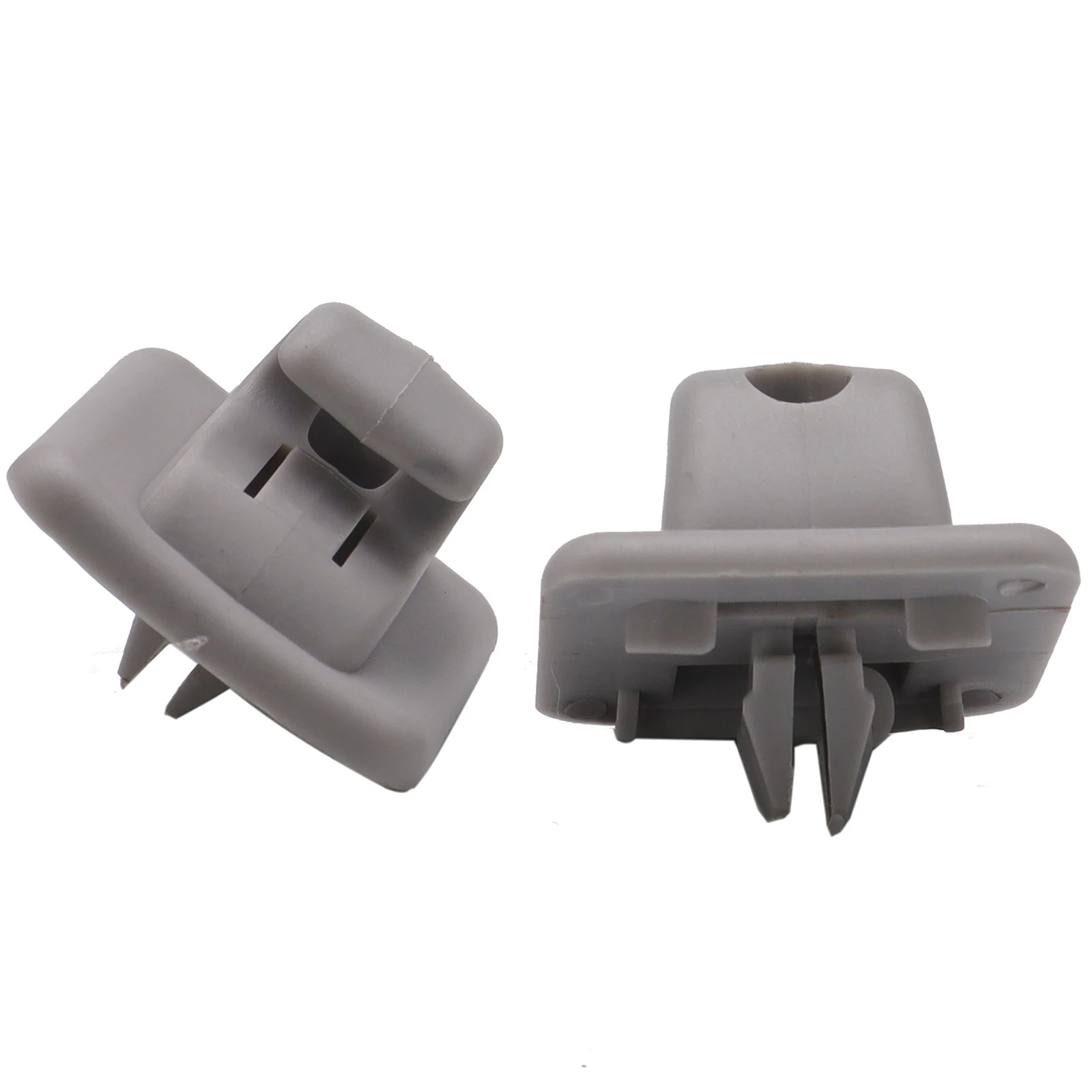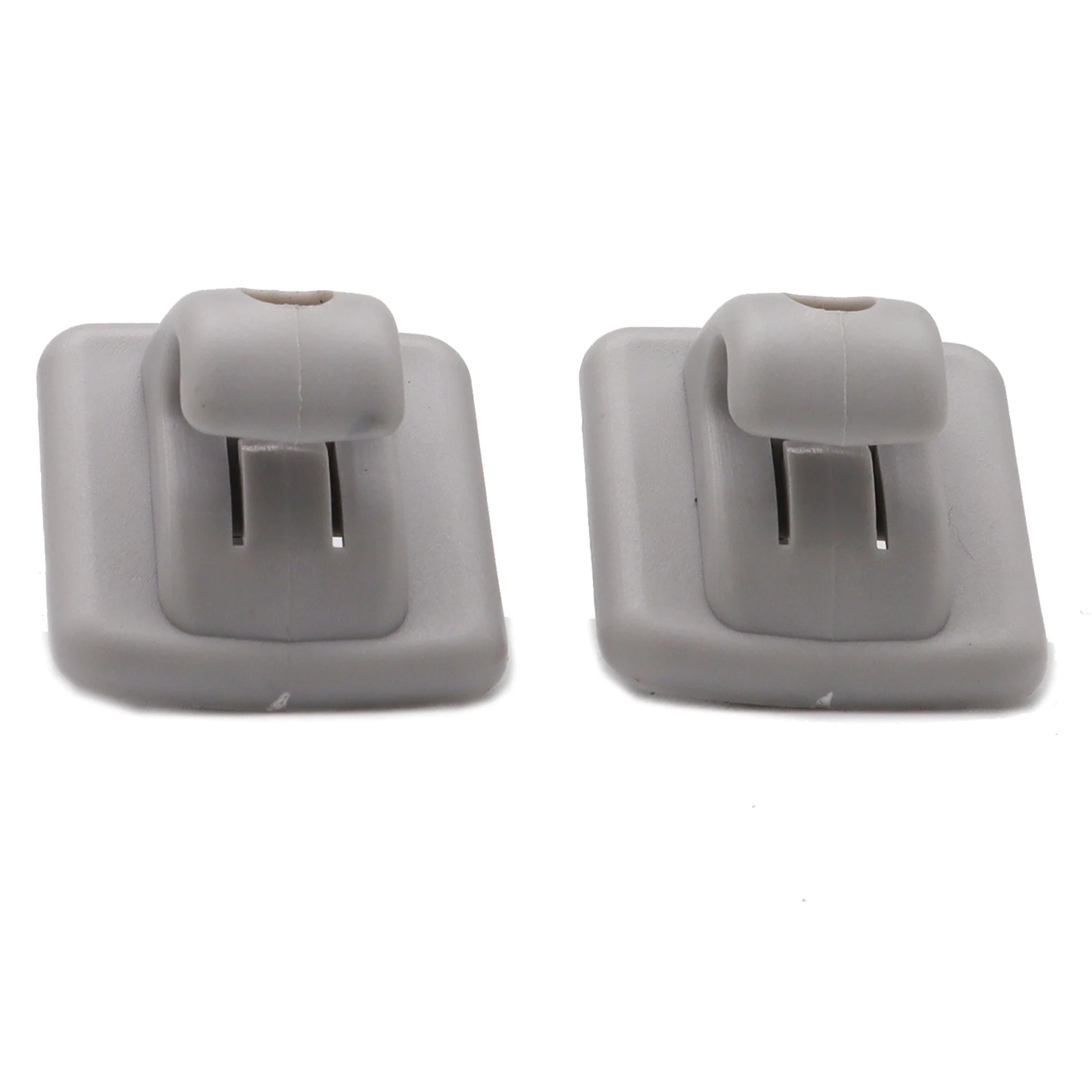 Keep your vehicle's interior neat and tidy with this practical set of sun visor clips. Designed specifically for various Peugeot, Citroën, and Toyota models, these clips are molded from durable plastic in a sleek gray coloration. The minimalist design, featuring a rectangular shape with a gently contoured top, provides both aesthetics and functionality. With easy installation through simple screws, these clips ensure your sun visor is held securely, offering convenience while driving. Imagine the ease of accessing your visor and the organized look it brings to your vehicle, making every journey more enjoyable.