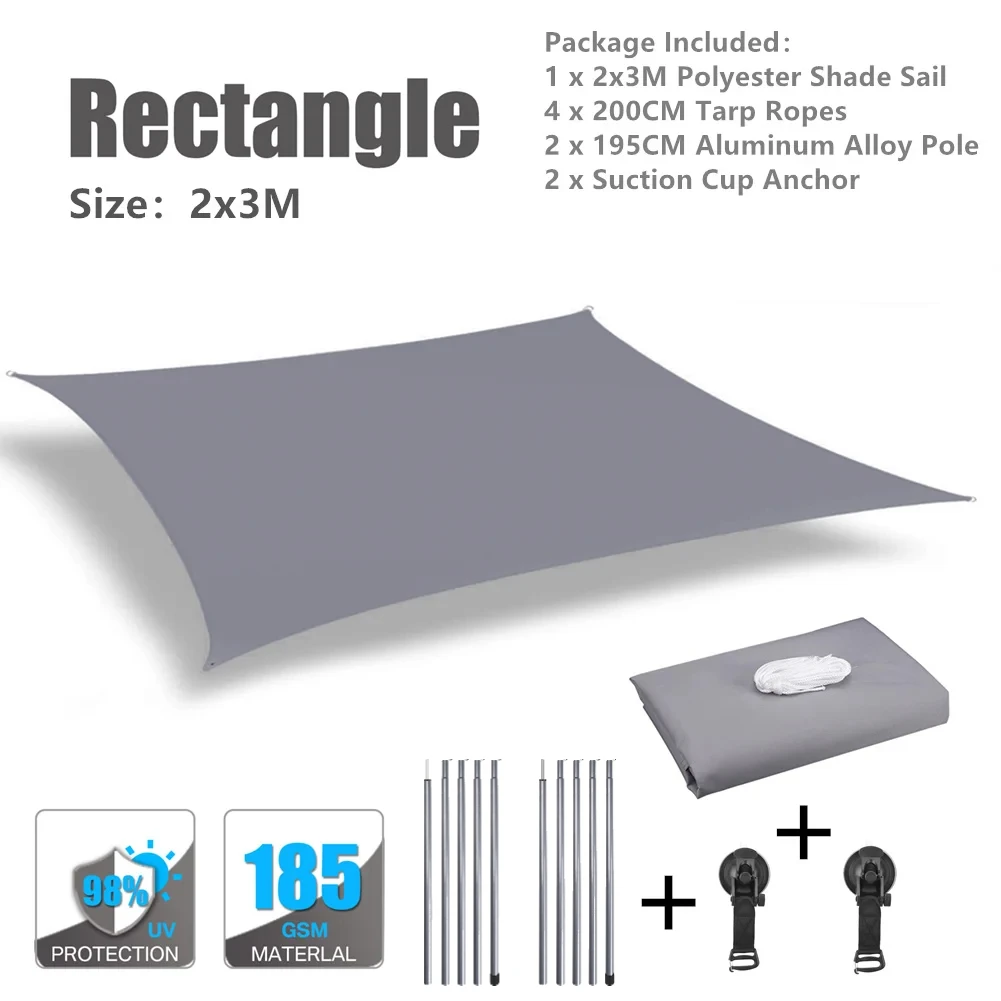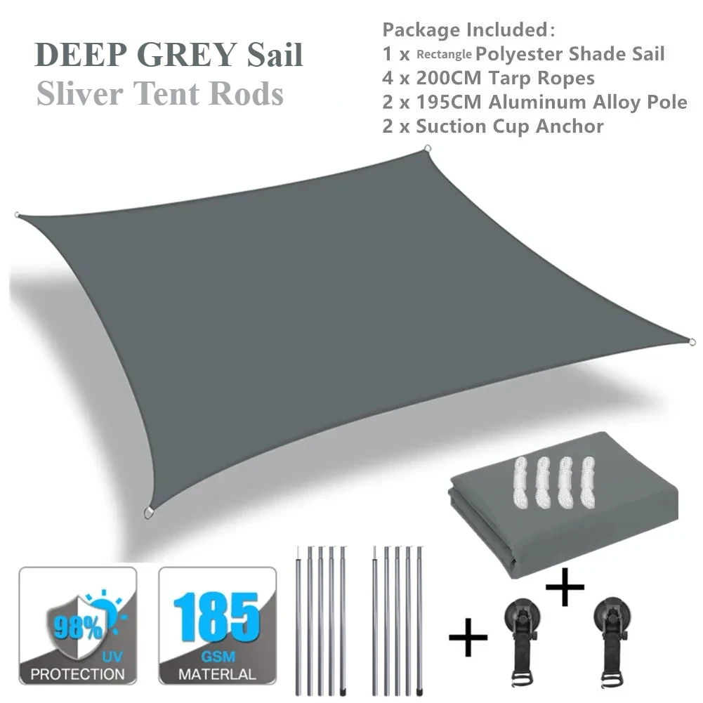 - Includes two 195cm aluminum alloy support poles, four 2-meter tarps with ropes, and two suction cup anchors for versatile installation on vehicles or surfaces.