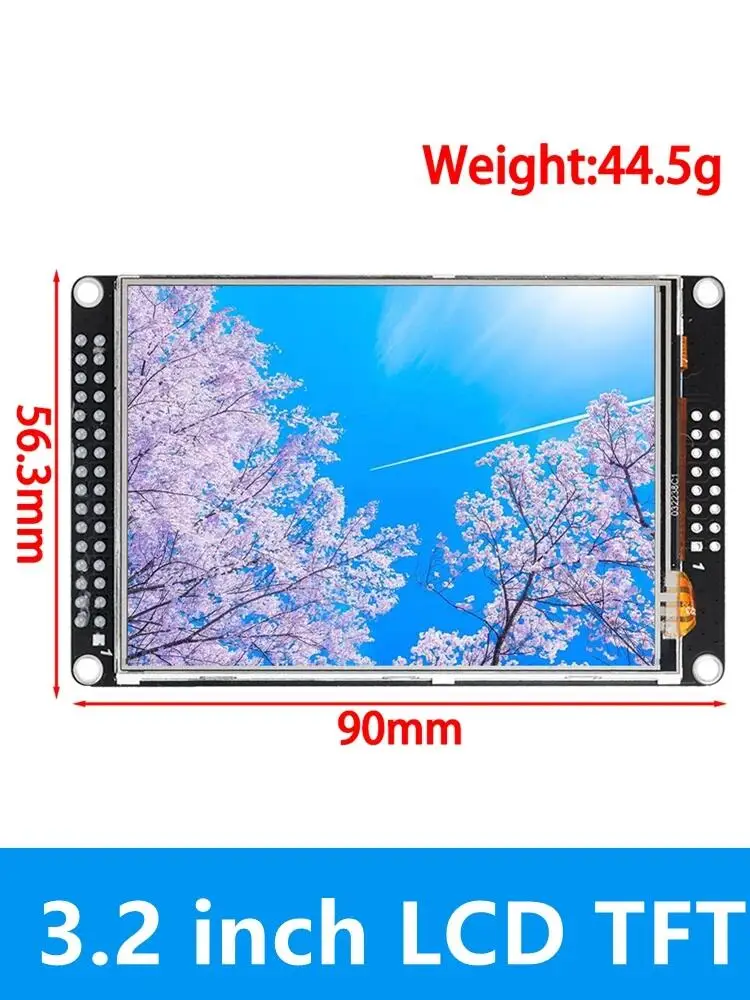 Imagine elevating your electronics with this stunning 3.2-inch TFT LCD display—featuring a crisp resolution of 320×240 pixels and a vibrant true color palette. Its sleek rectangular design is complemented by a black bezel, framing an eye-catching display of cherry blossoms and a luminous blue sky. The bright orange ribbon cable adds a striking contrast and makes connections effortless. Paired with a durable black development board based on the STM32F407VET6 microcontroller, this setup offers both style and functionality. The resistive touchscreen responds smoothly, making it perfect for interactive projects. Whether you're prototyping or creating a sleek embedded device, this high-resolution display kit combines visual flair with reliable performance, helping you turn your ideas into reality.