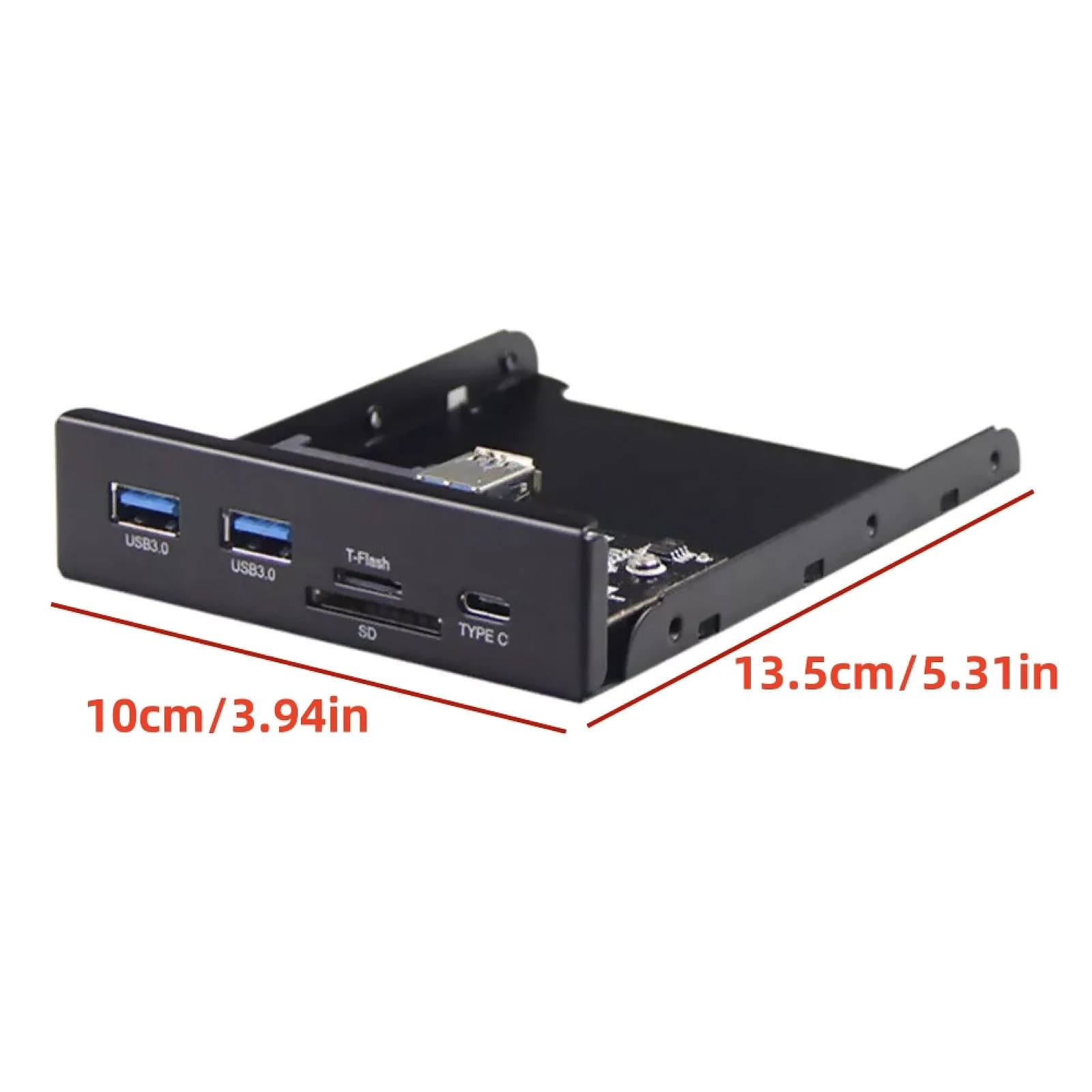 This front panel hub is designed for 3.5-inch open bay spaces, featuring one USB Type-C port and two USB 3.0 Type-A ports, each supporting data transfer speeds of up to 5Gbps. It includes a built-in Micro SD/TF card reader for seamless data transfer and is compatible with multiple operating systems such as Windows XP/Vista/7/8/8.1, Linux, and Mac OS. The hub supports hot-swapping technology and is equipped with overvoltage and overcurrent protection for device safety. Constructed from durable metal, it not only provides robust functionality but also enhances your setup’s aesthetic. Package includes one front panel, USB cable, and screws for easy installation.