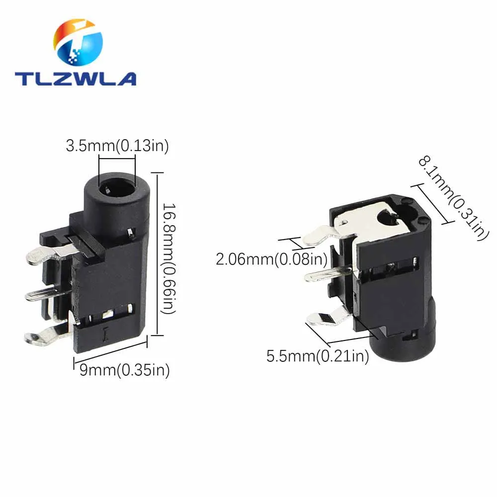 - The 3.5mm cylindrical openings are precisely engineered to fit stereo headphone plugs, while the mounting pins facilitate easy soldering onto circuit boards.
