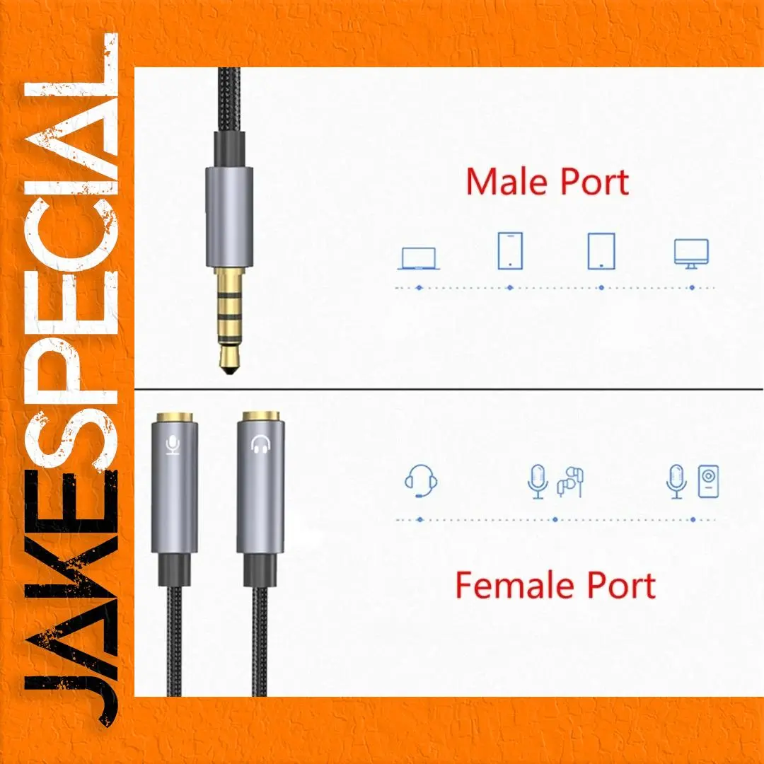 Experience seamless audio and microphone connectivity with this 3.5mm splitter cable, measuring approximately 25.0 cm (9.84″) and crafted from durable metal and PVC. Featuring a sleek metallic silver finish with gold accents on the connectors, the cable includes a male 3.5mm jack and two split adapters—one with a microphone icon and the other with a headphone icon—ensuring clear, high-quality sound transmission with minimal noise. Compatible with most devices like laptops and tablets, this lightweight, portable cable is ideal for gaming, communication, and music on the go, making it perfect for travel, outdoor activities, or professional use.