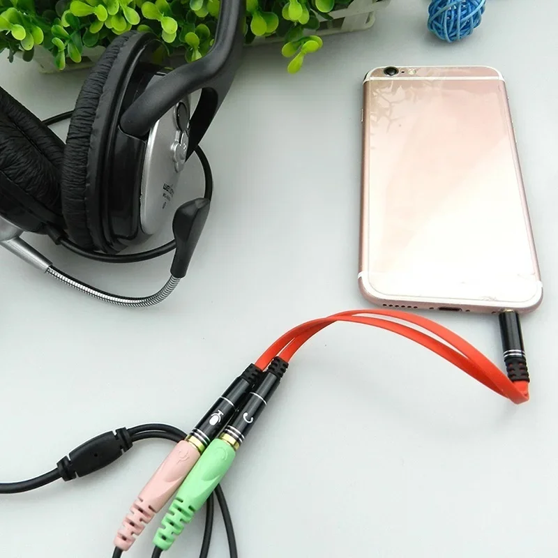 - Features a 3.5mm 4-pole male connector (CTIA standard) that converts into two female ports, supporting audio and mic functionalities for various devices.