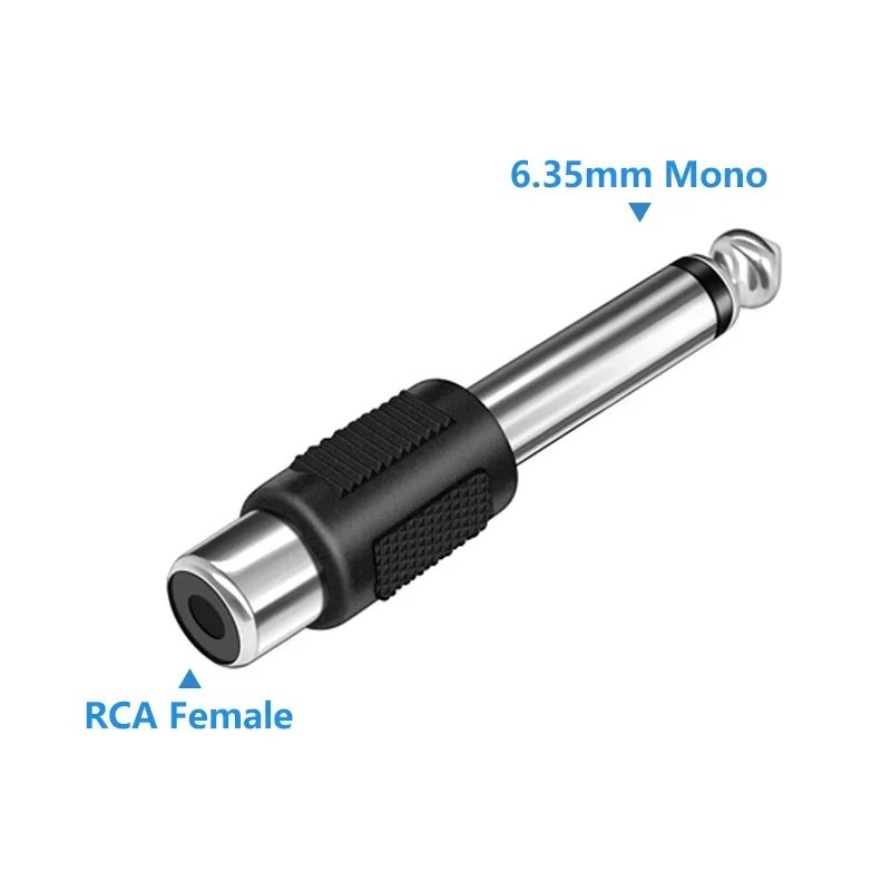 - The device supports multiple configurations, including 3.5mm stereo to 2RCA, 3.5mm mono to RCA, and 6.35mm stereo or mono to RCA, broadening compatibility across devices.