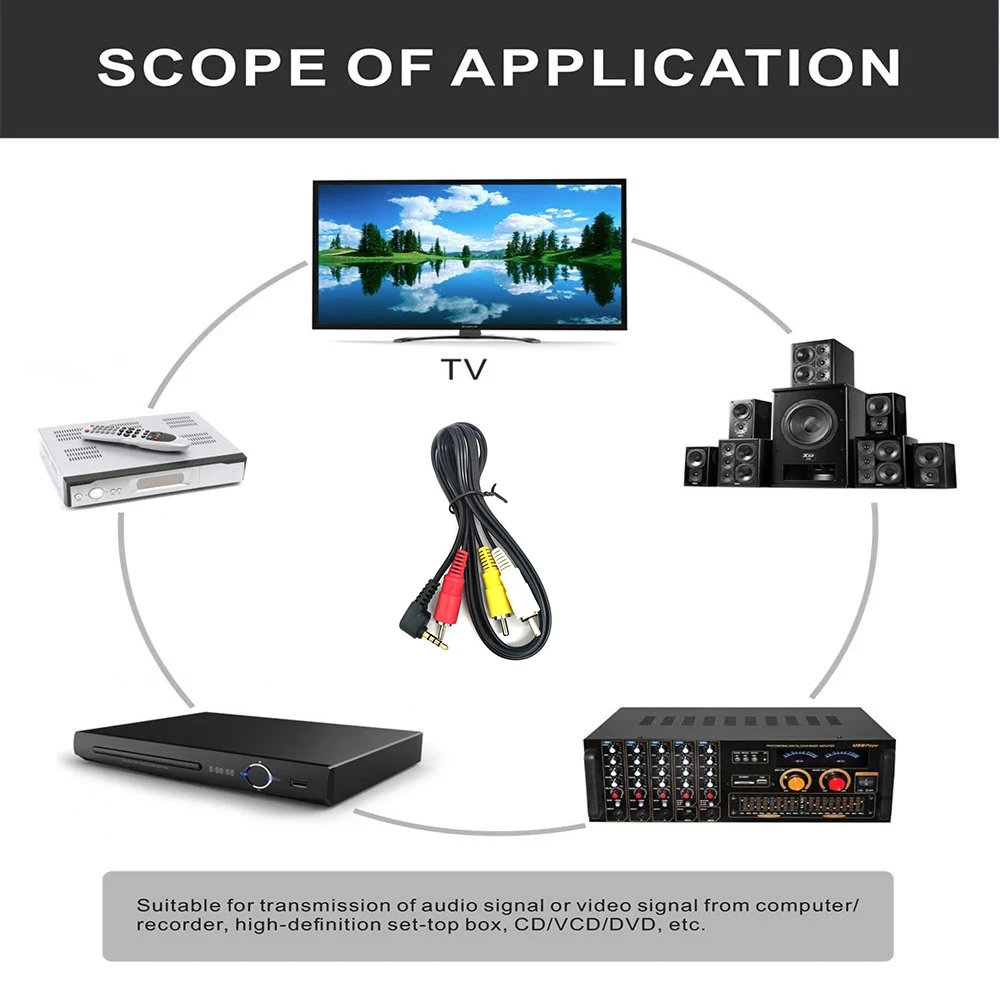 This 3.5mm to RCA Male Audio Video AV Cable is meticulously crafted to ensure high-quality audio and video transmission. With a generous length of 1 meter, it allows for flexible placements of your devices without any hassle. The cable is designed with a right-angled 3.5mm jack on one end for easy connection, and three RCA connectors—colored red for audio right, white for audio left, and yellow for video—on the other. Made from environmentally-friendly PVC, it is both soft and flexible, providing you with durability for long-term use. Enjoy seamless performance whether connecting your laptop, DVD player, or TV, and elevate your entertainment experience.
