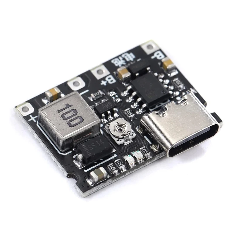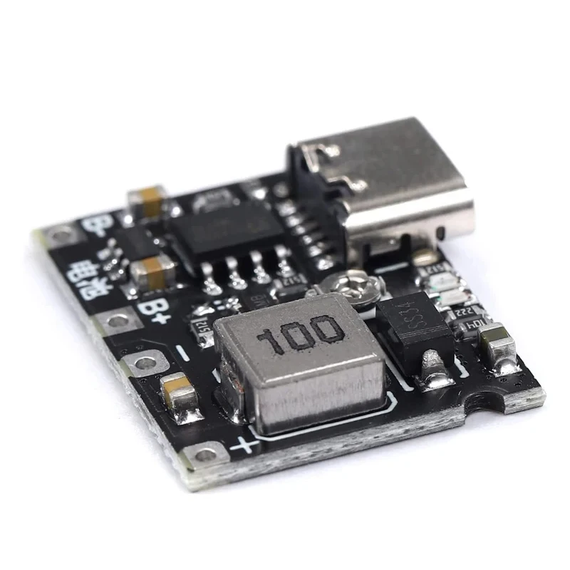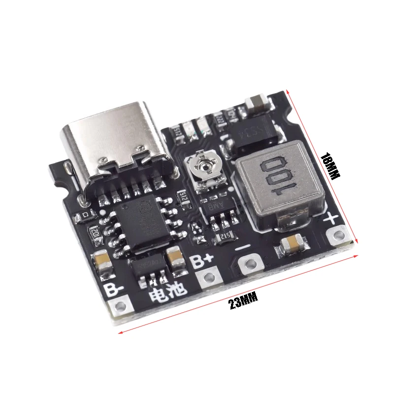 Imagine seamlessly powering your devices with this sophisticated boost and discharge module tailored for 3.7V lithium batteries. Its sleek, rectangular black PCB combines a modern aesthetic with high-tech functionality, featuring metallic components such as a cylindrical inductor and a large, silver-toned voltage regulator. You’ll notice precision surface-mount resistors, capacitors, and integrated chips neatly arranged for optimal performance. The metallic terminals, including marked B+ and B-, ensure secure connections, while four mounting pads facilitate versatile installation. With adjustable output voltage from 4.2V to 28V, a programmable constant current up to 1A, and protection against overvoltage, overheating, and reverse polarity, this module offers dependable and safe power management. Its compact design is perfect for various applications, providing efficient and reliable energy transfer.