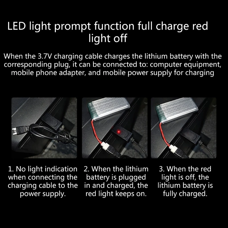 This 3.7V Lithium Battery USB Charging Cable is the perfect companion for your remote control cars and drones, offering a seamless solution for all your charging needs. Its lightweight PVC design ensures easy portability, and the sleek black casing adds a modern touch. With a 500mA output and two built-in LED indicators, you'll always know the charging status at a glance. Whether you're at home or on the go, this practical accessory makes charging effortless, ensuring you’re never left with a dead battery. Enjoy uninterrupted fun with a reliable charging experience tailored for your hobbyist adventures.