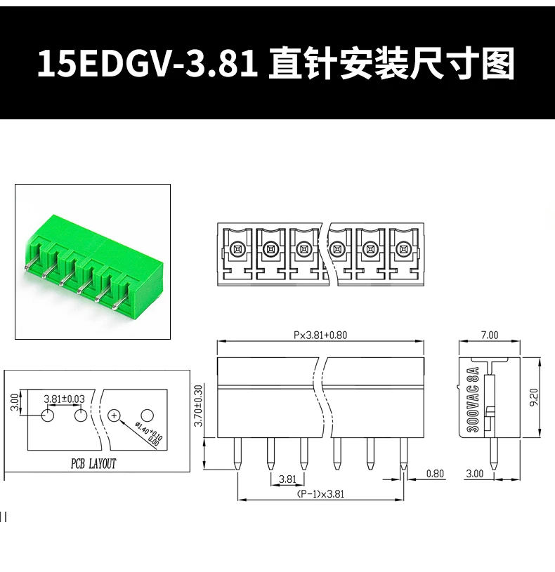 - Designed with a 3.81mm pitch, rated for 220V at 8A and 300V at 15A, suitable for various circuit needs with durable contact resistance of 20mΩ.