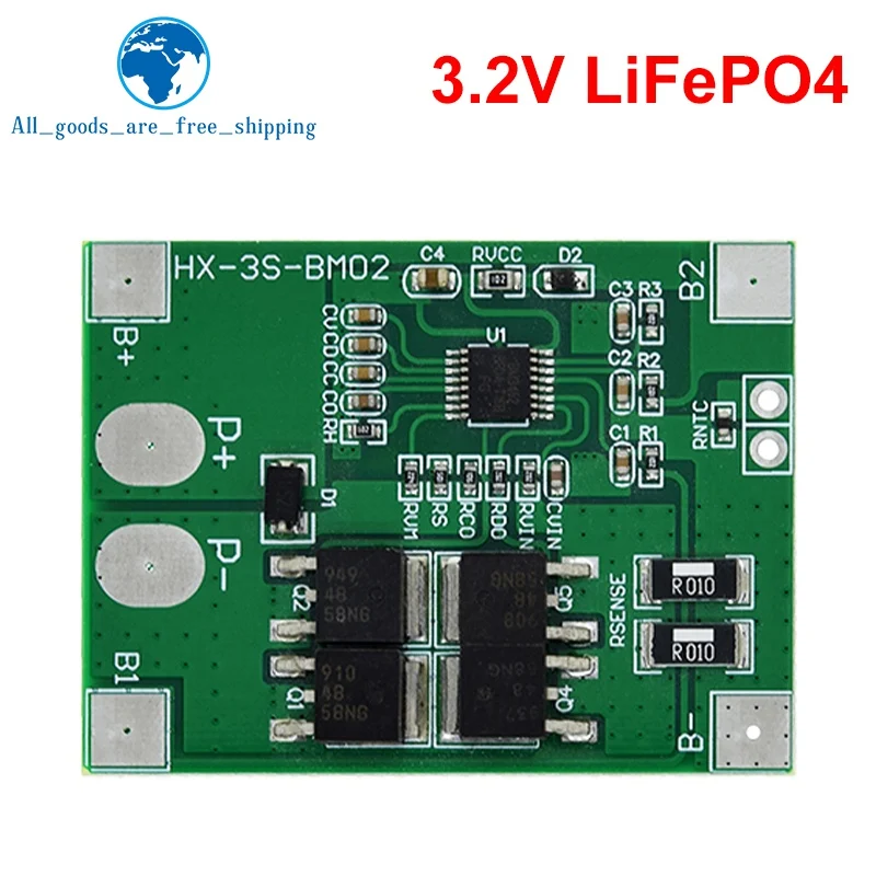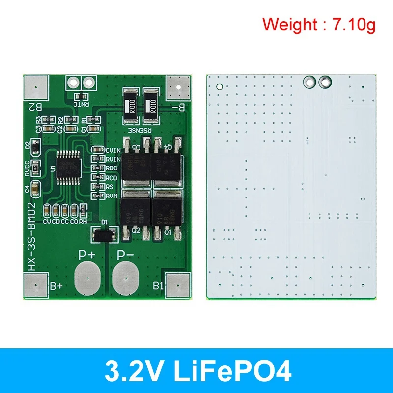 - Designed for 3-cell packs of 18650 Li-ion or LiFePO4 batteries, supporting 3.7V and 3.2V configurations for versatile use. Compact size fits neatly into various applications for reliable protection.