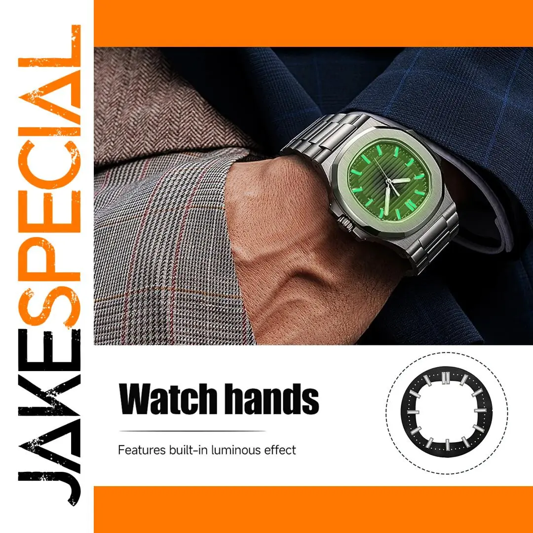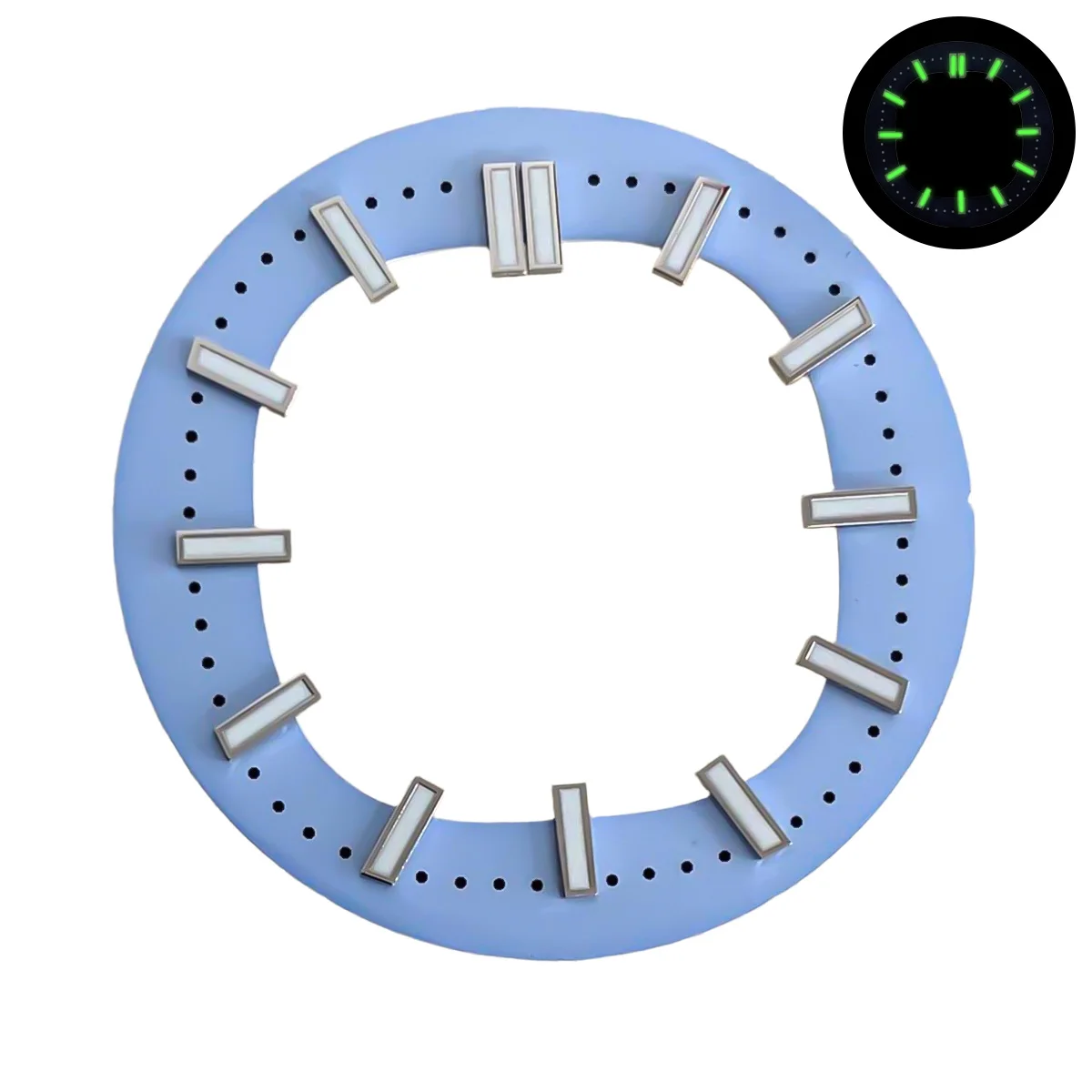 Experience the perfect blend of modern style and functional brilliance with this 30.5mm green luminous dial designed specifically for NH35/NH36 automatic movements. Its vibrant green color glows softly in low-light conditions, highlighting the textured, ribbed pattern that adds depth and sophistication. The luminous indexes and hands ensure easy readability at any hour, while the broader 12 o'clock marker enhances orientation. Crafted with precision and care, this dial is ideal for customizing or repairing your skeleton watch, giving it a contemporary yet elegant appearance. Whether you're upgrading your current timepiece or assembling a new one, this versatile dial provides a stylish focal point of luminous beauty and reliable functionality.