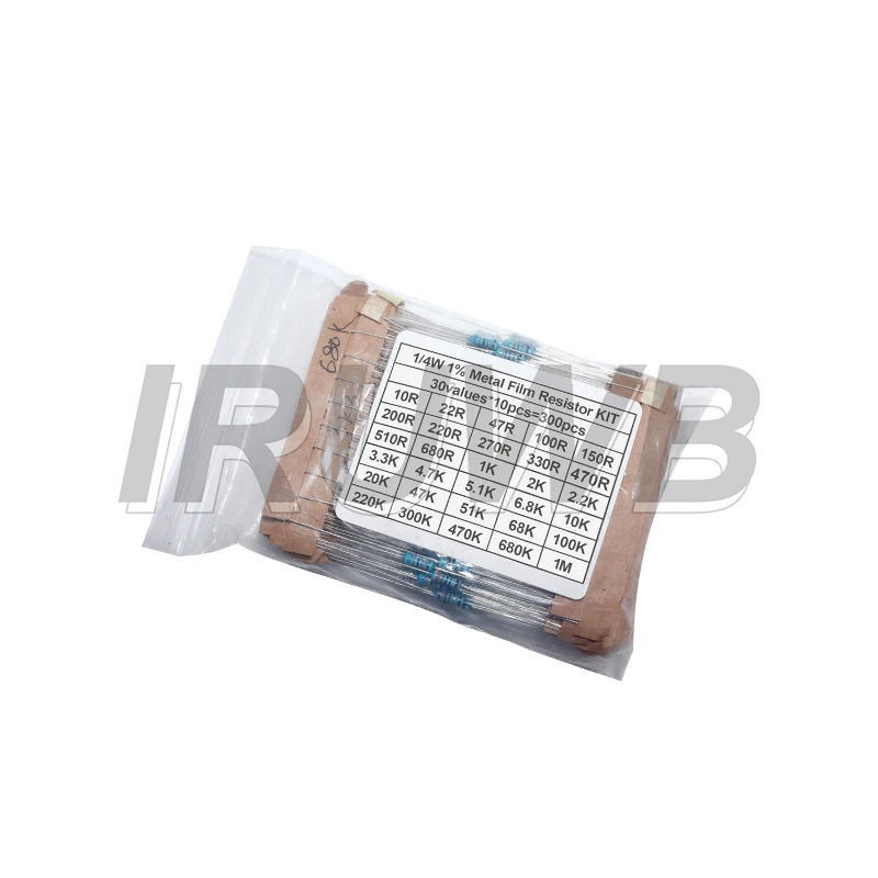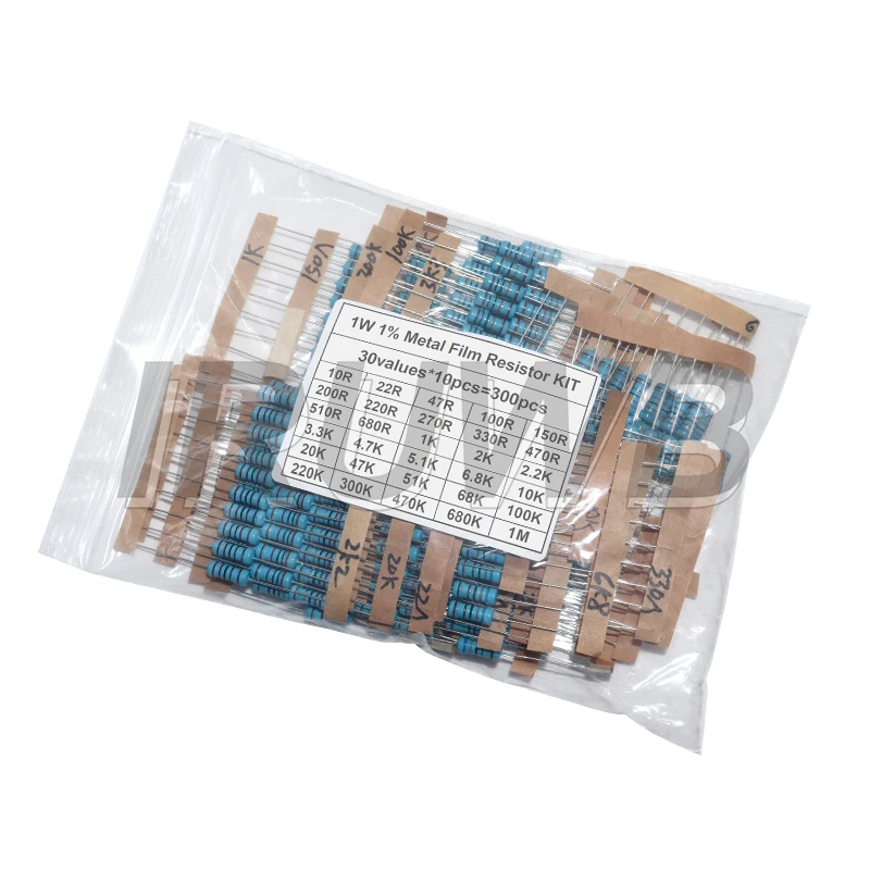 - Includes 300 metal film resistors with resistance values from 10Ω to 1MΩ, in three power ratings: 0.25W, 0.5W, and 1W, suitable for various application needs.